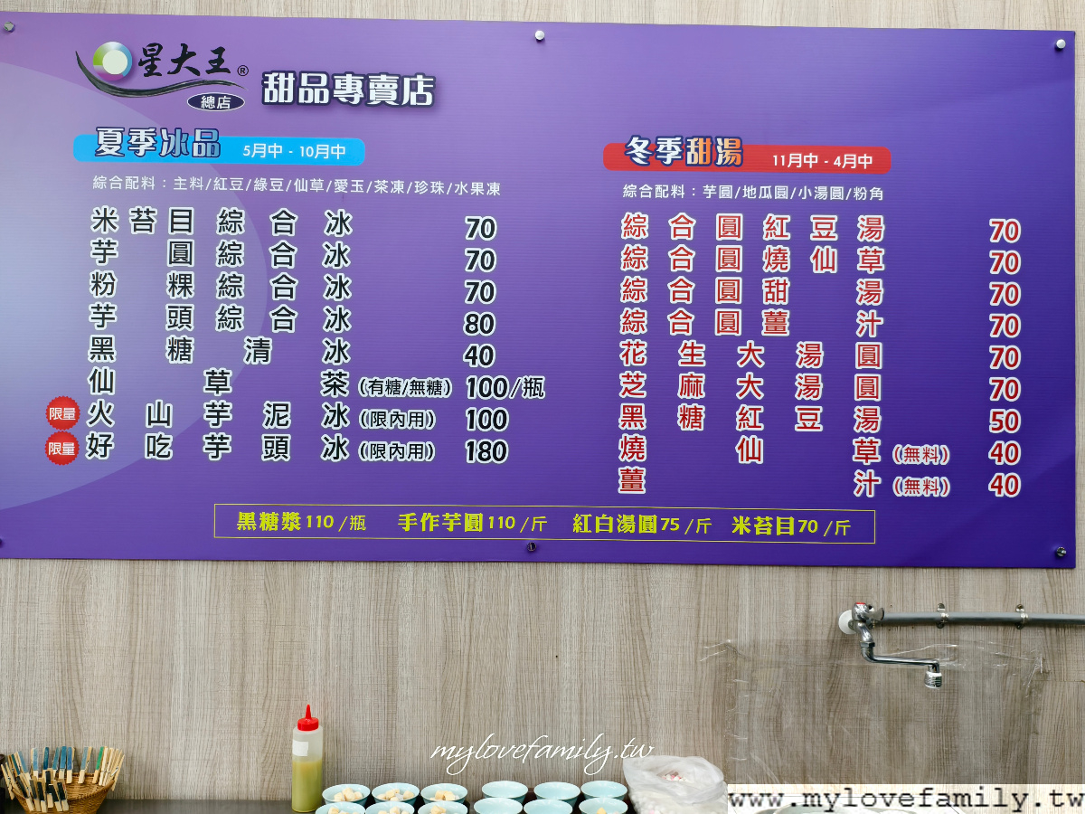 夏季的【星大王甜品專賣-桃園力行總店】冰品,請參考另一篇:熱啊 就是愛吃冰 古早味料爆多黑糖剉冰 八樣配料$60元 闆娘還不停的再加剉冰 吃冰吃到飽-ALICE一家樂遊遊