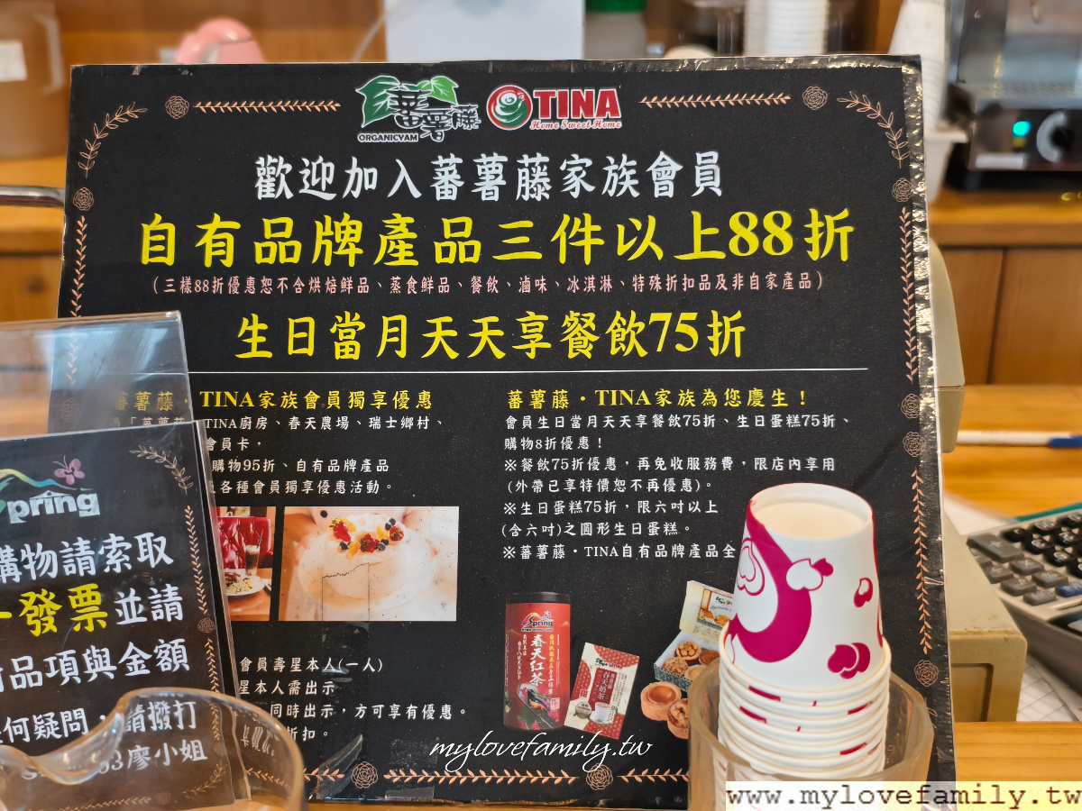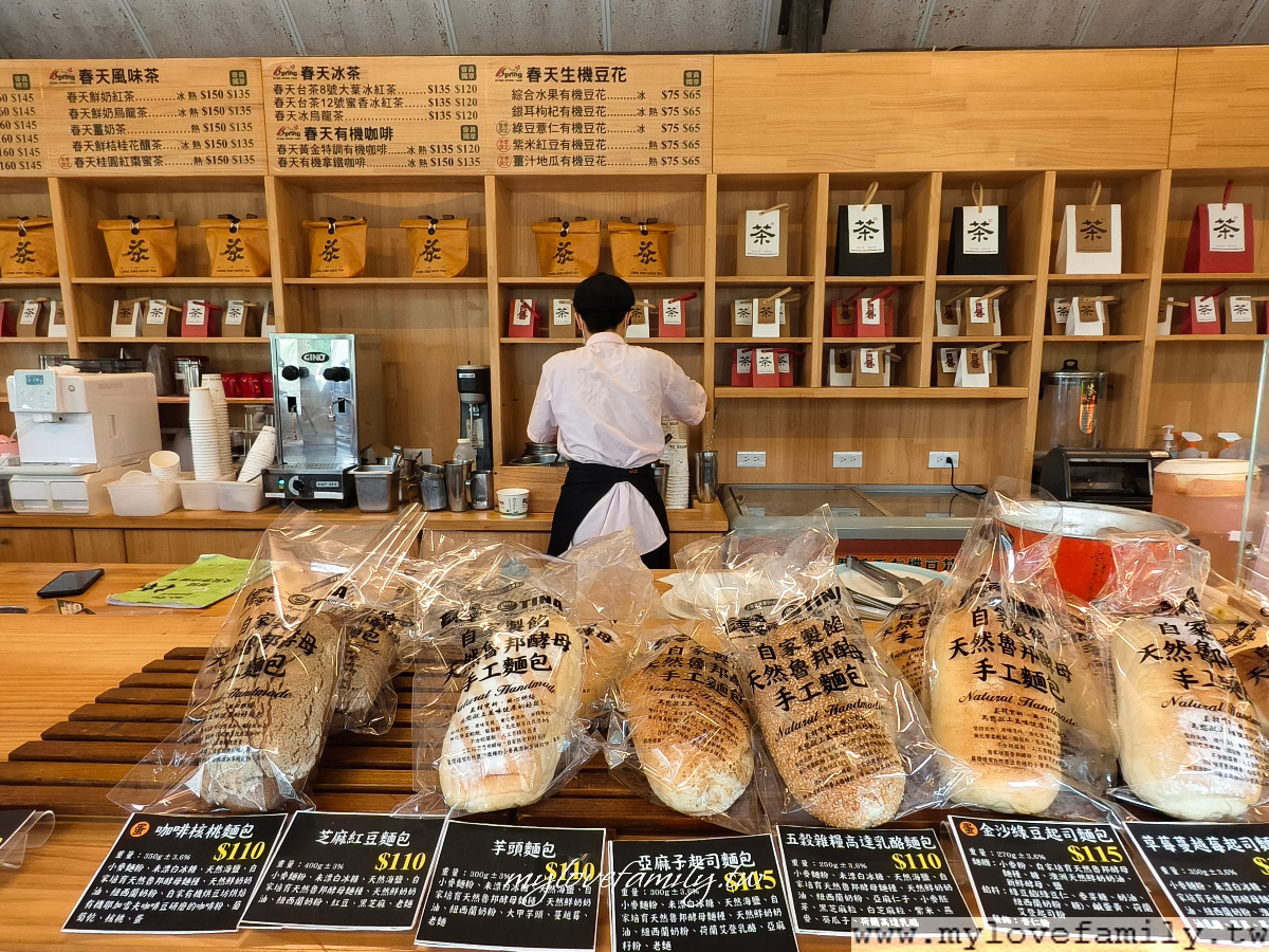 【春天紅茶專門店】賣些什麼?除了紅茶之外,少不了自家的【蕃薯藤自家製天然酵母窯烤有機麵包坊】的各式麵包,看喜歡的就要快下手喔!晚來就買不到。