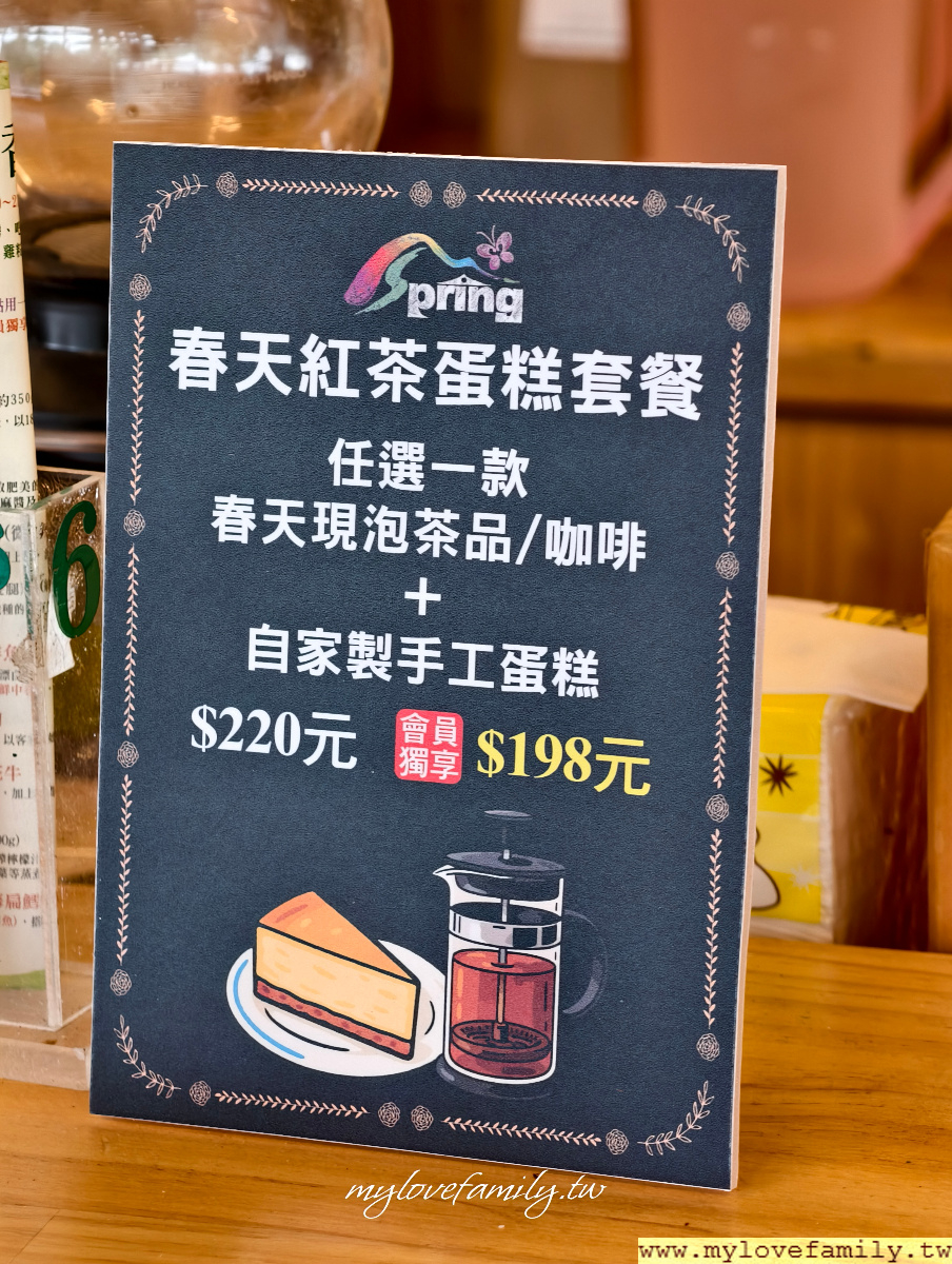 春天紅茶蛋糕套餐任一現泡茶品/咖啡+手工蛋糕,會員價$198元,以觀光景點來說,這算親民價。