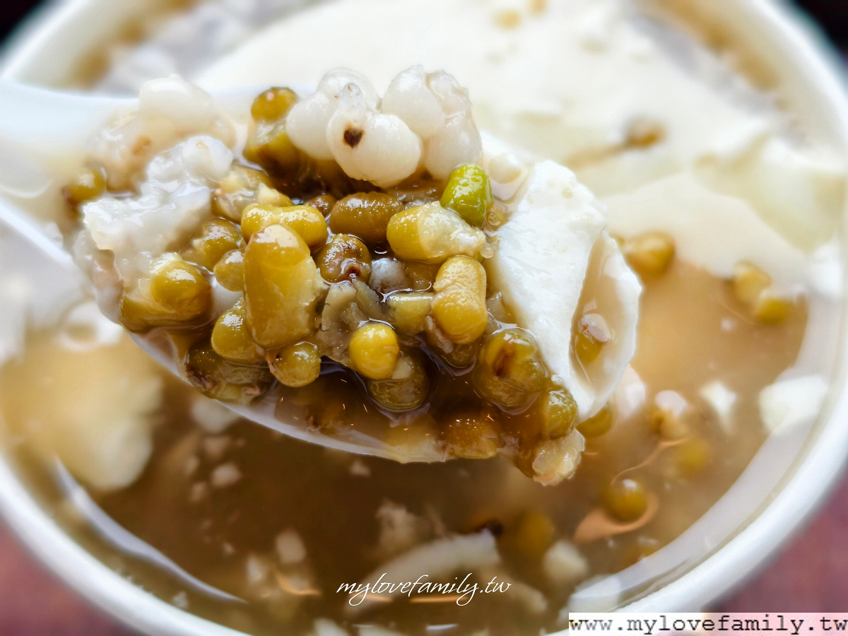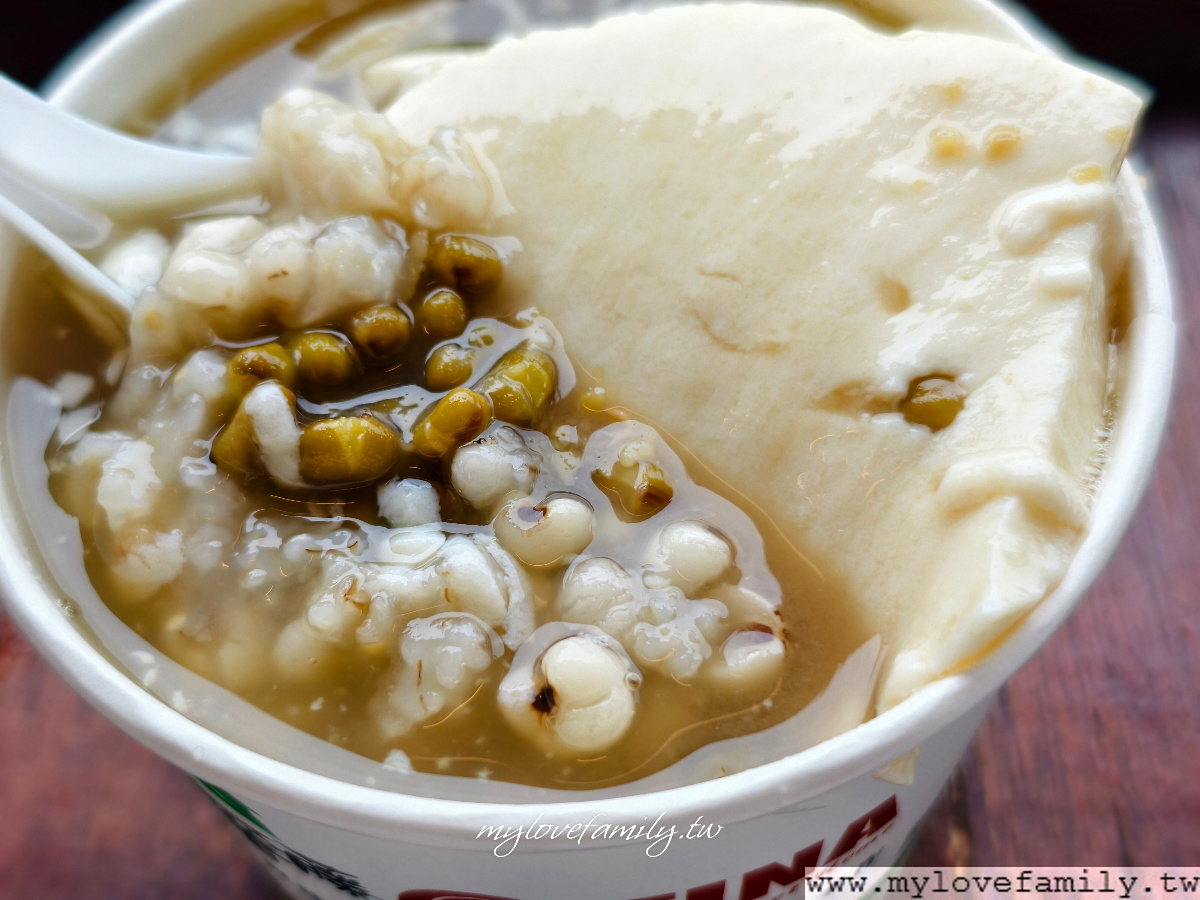 這次吃的綠豆薏仁豆花,料多好誇張,好實在的一碗。