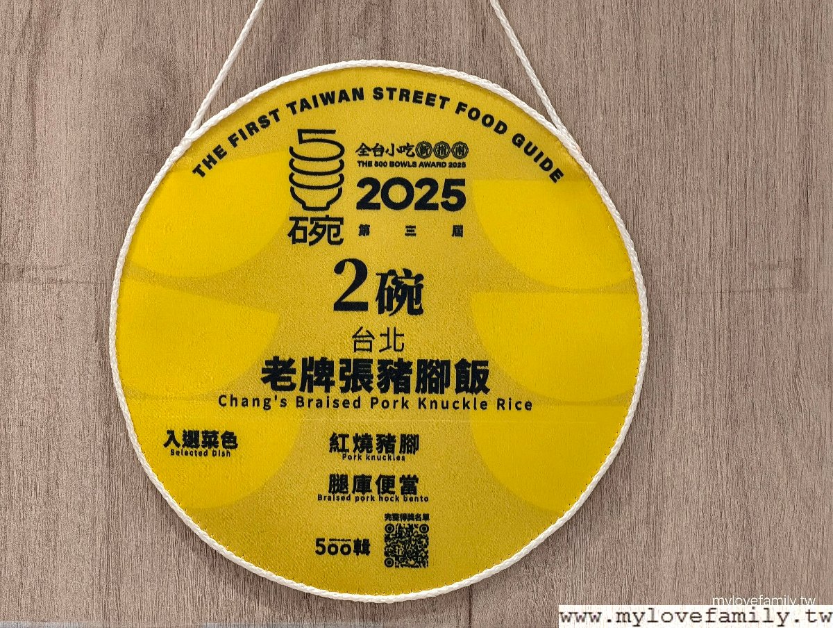 隔了三個多月沒買,這次才發現原來全台小吃第三屆500碗2025得獎名單中,【老牌張豬腳】拿下「二碗」的奬項,超人氣的【老牌張豬腳】實至名歸。有五家店家獲得最高榮譽「三碗」。 它們分別是:新北的「朱記花枝羹」(花枝羹+米粉炒)、彰化的「北斗肉圓詹」(肉圓)、彰化的「北門口肉圓(民生店)」(肉圓、干貝肉圓、龍骨髓湯)、台南的「邱家小卷米粉」(小卷米粉)以及花蓮的「橋頭臭豆腐」(臭豆腐)。
