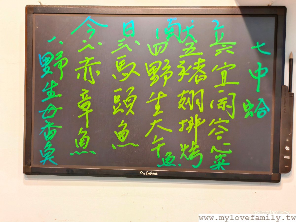手寫板的部份, 或許是以當日買的新鮮魚獲為主。