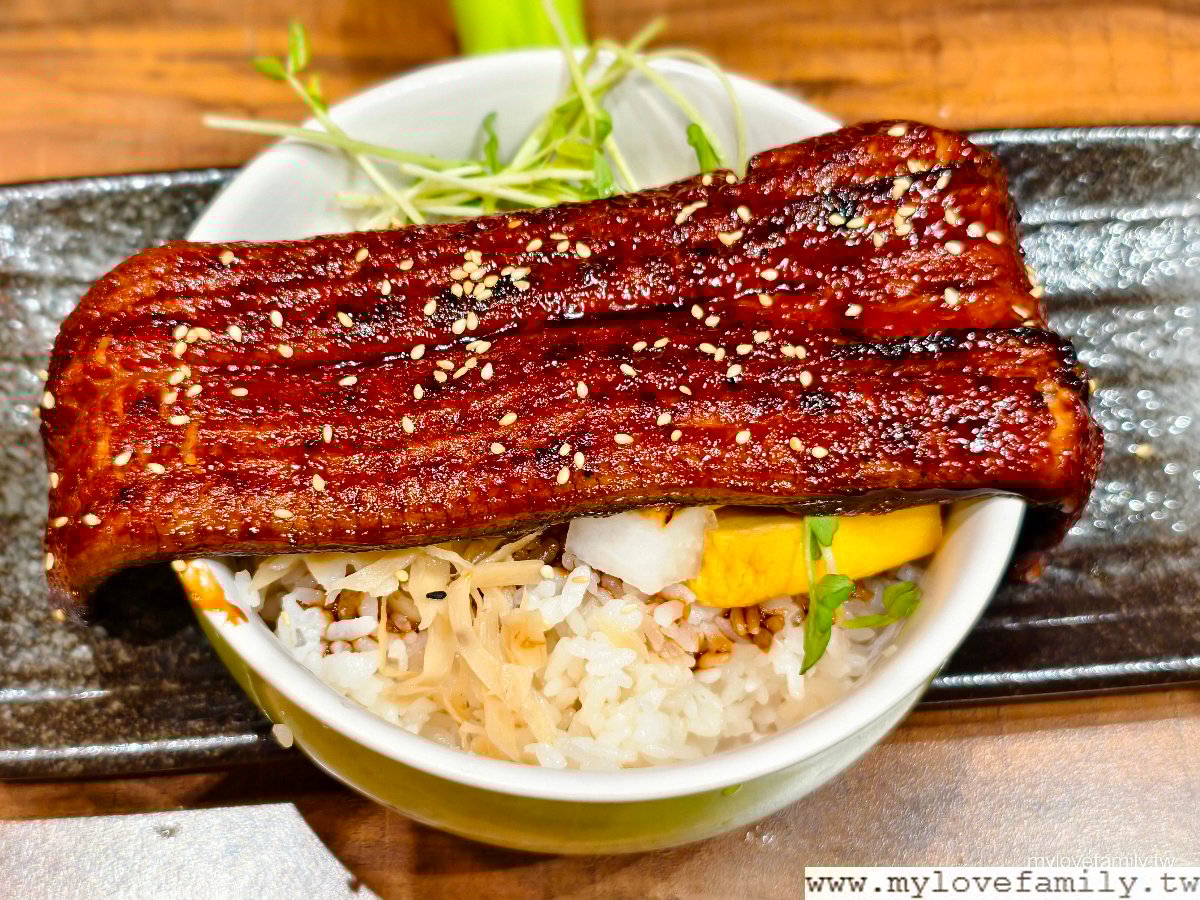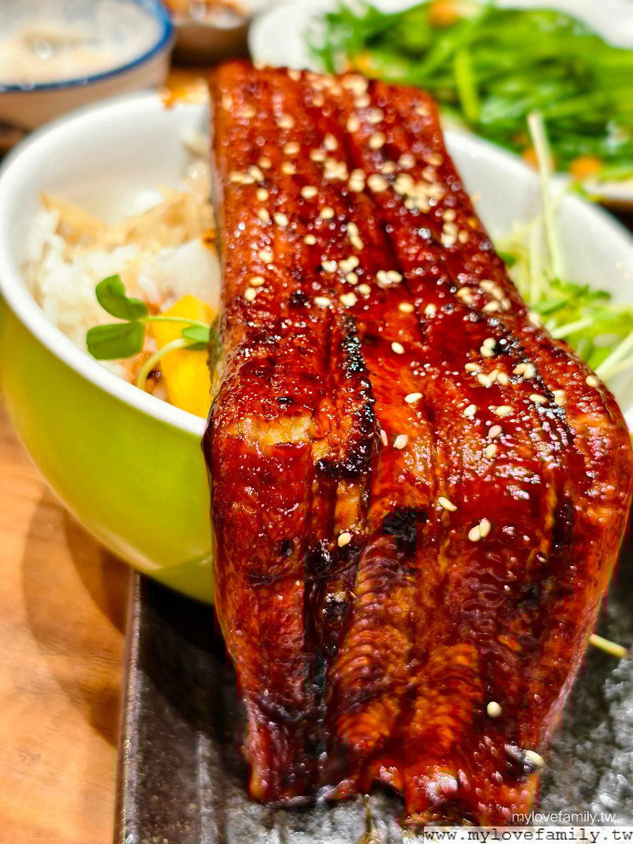 宥宥的鰻魚飯,一整尾的鰻魚超豪邁,調味很剛好,醬汁也有鎖在鰻魚內,美中不足的是,我們以為這鰻魚料理的很好,會跟【うなぎ四代目菊かわ 鰻魚飯專賣店】一樣會完全去魚刺,沒想到這中間有不少魚刺,當天宥宥的喉嚨卡了一隻魚刺,在完全無法去除的情況之下,當天一吃完就立即去掛耳鼻喉科看診。