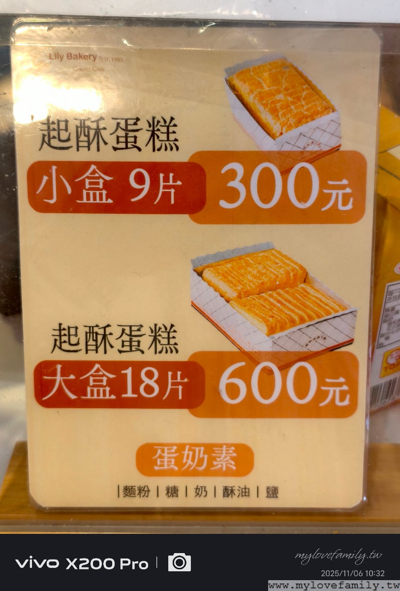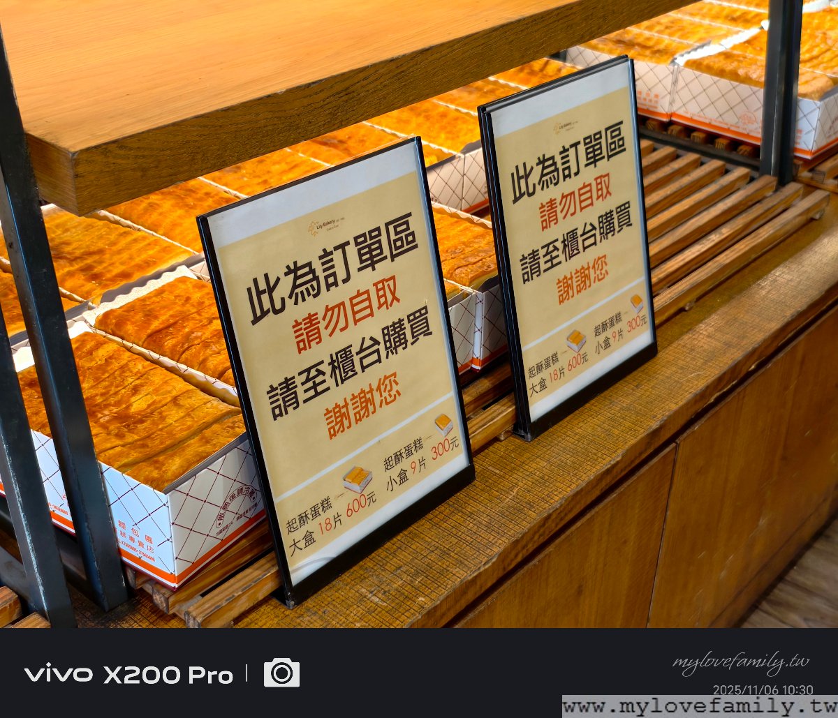 進入後,第一件事就是尋找起酥蛋糕,看到整區的訂單區,當下還擔心會不會買不到起酥蛋糕呢?大部份的訂單都是買小盒9片起酥蛋糕,小盒價格$300元,以現今物價漲不停的情況之下,平均一片$34元,這價格相當划算。