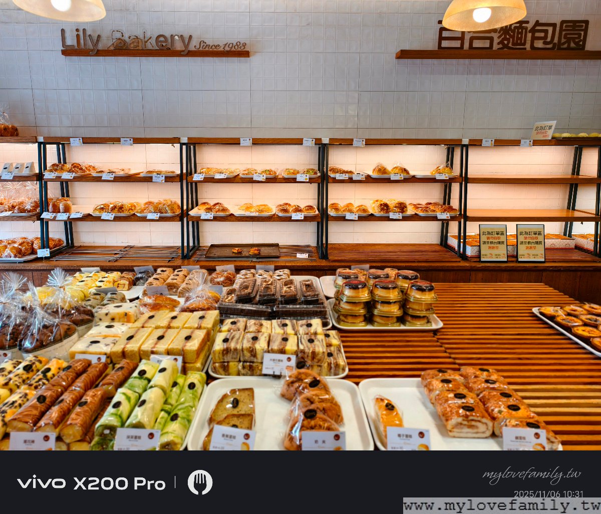 【百合麵包園】對我而言,有著一種特殊的情感,高中時期,就在士林唸高中,每天晚上要從士林坐公車回大同區,而如從學校開始坐公車,會收二段式票價,當年,為了省下一段票,每天下課從學校走路走三站的路程,每天都會經過【百合麵包園】,而在那年代裏,家中的經濟不寬裕,即使每天路過【百合麵包園】,就真的只是路過,整個高中時期,走進【百合麵包園】的次數不會超過五次,進入【百合麵包園】也只會買起酥蛋糕,因此,對於那三年時期,【百合麵包園】的起酥蛋糕帶給我的是一份幸福回憶。