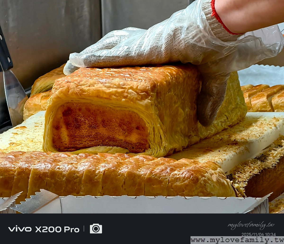 最喜歡頭的第一片,酥皮多一些,酥脆香甜,加上蛋糕,外酥內軟且鹹香對味。