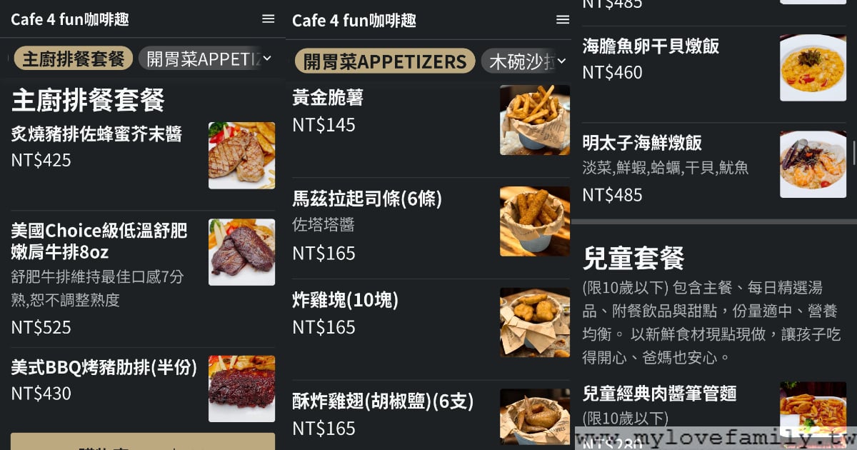 平日中午到訪,當天只有一對雙胞胎女孩在遊戲空間玩樂著,當天應是由小孩孩的媽媽及爺爺奶奶同行一起來用餐,【Café 4 FUN 咖啡趣】可算是一間家庭聚餐或好友相聚的好地方。