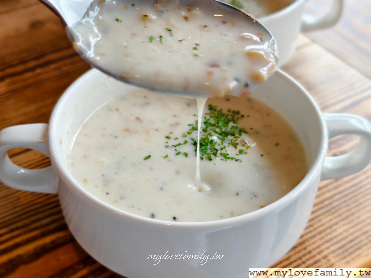 當天的湯品是蘑菇濃湯,濃稠又有滿滿的蘑菇香氣,很有水準的湯品。