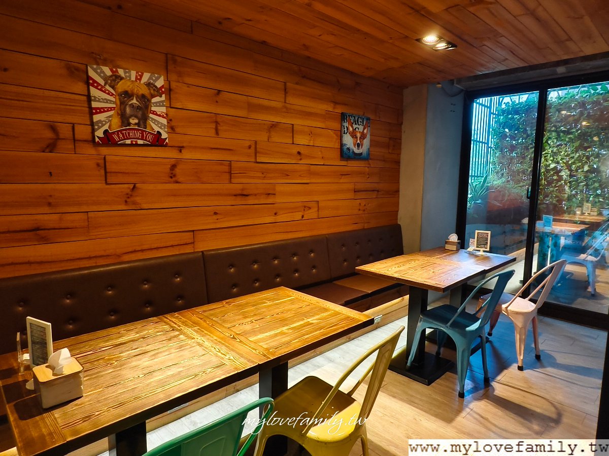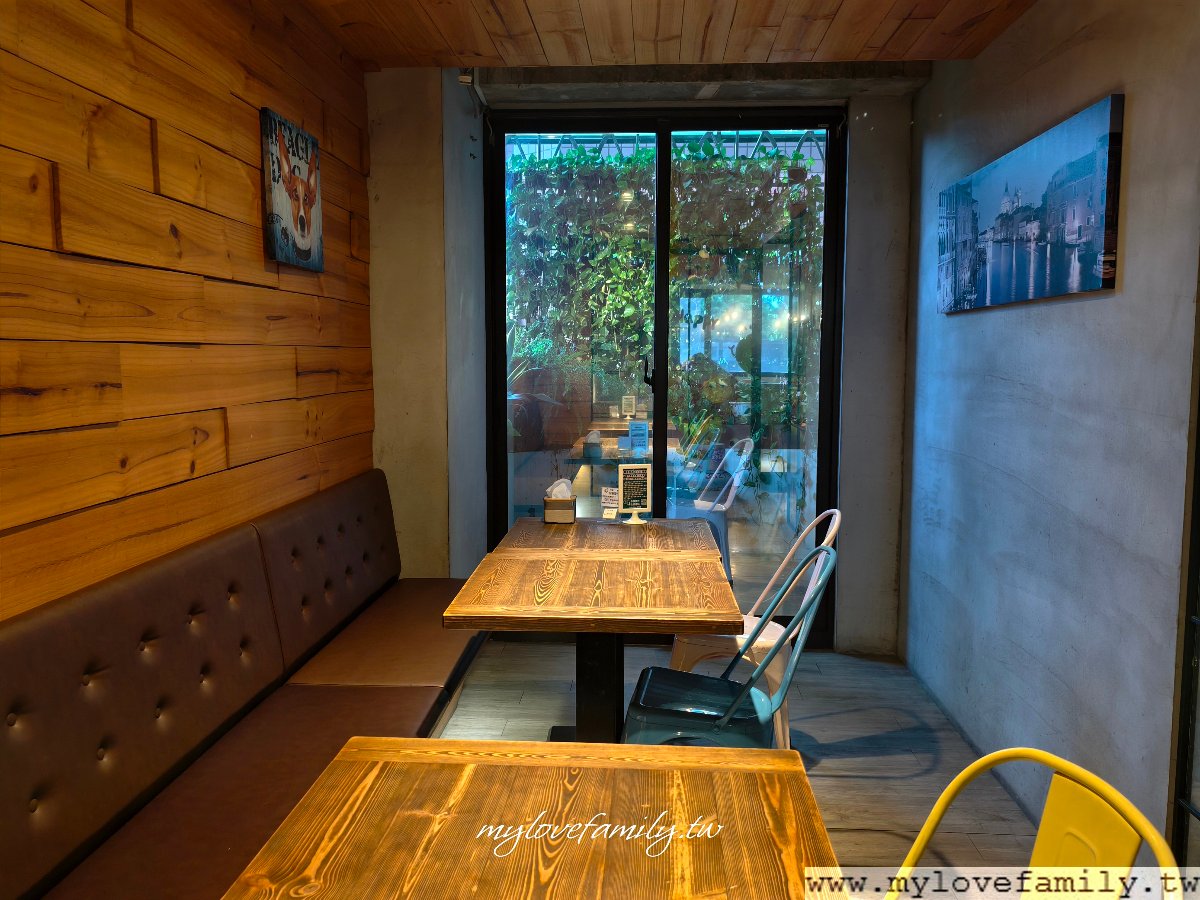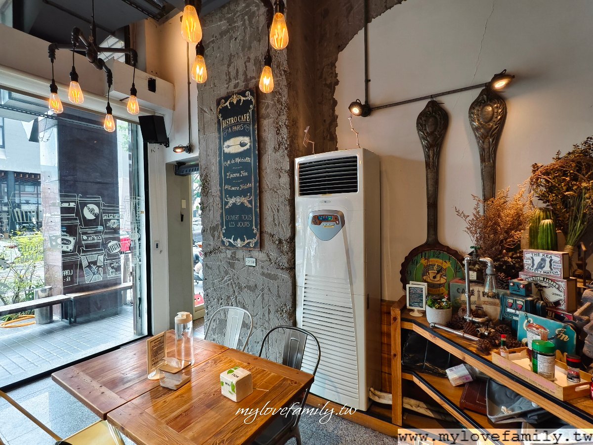 入口這一區為工業風設計,這區成為不少公司中午用餐聚餐的好選擇,這一區有二張四人位、一張六人座位區。