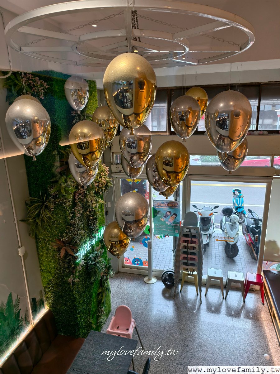 由這往下望,有看到滿滿的兒童餐椅呢?主打親子客群,當然要為小小孩準備好餐椅。