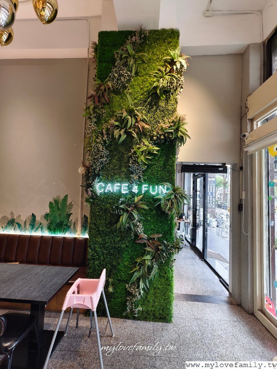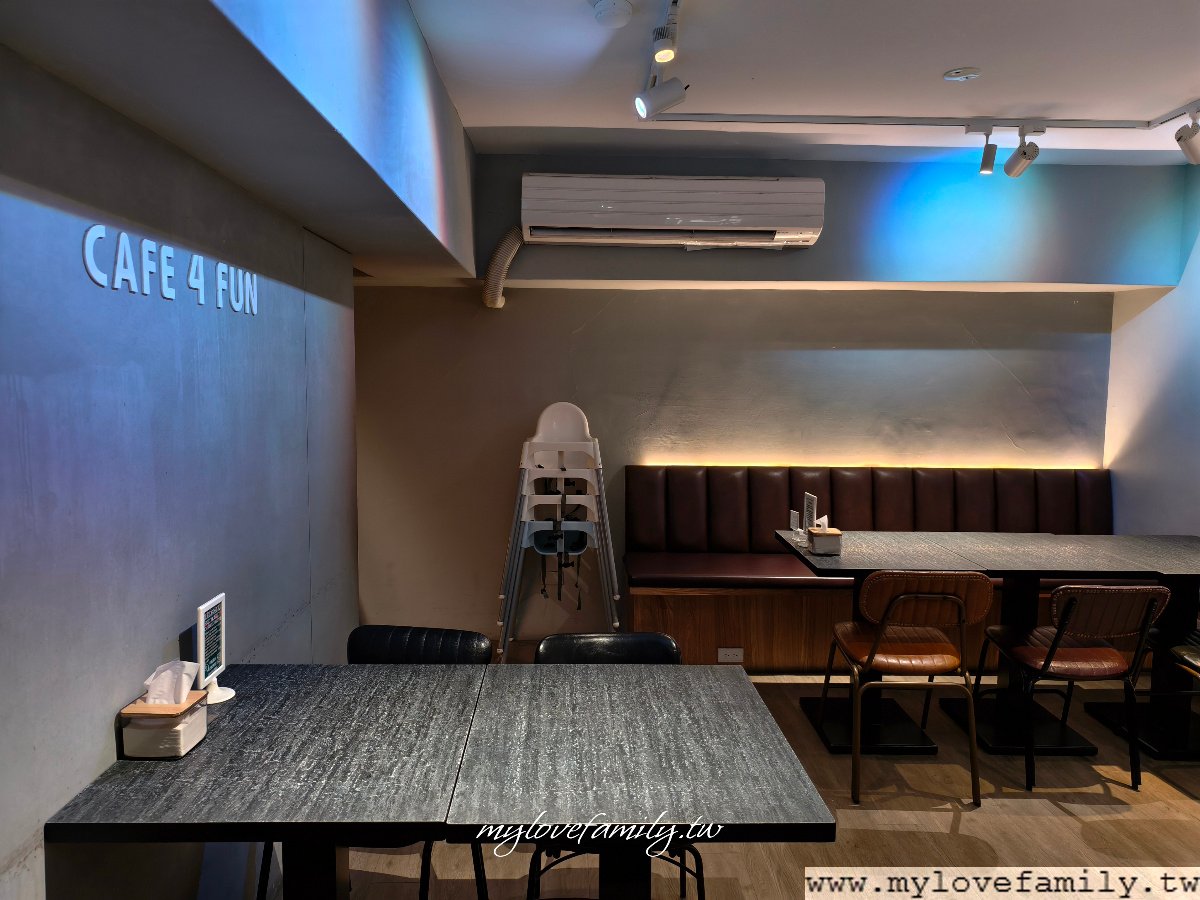 【Café 4 FUN 咖啡趣】全館分四個區域,有工業風設計、溫馨親子、和風、韓風網美區,二層樓的空間,即使沒有帶孩子同行,可以選擇非遊戲區的空間,平日來這好好休息、放慢用餐。