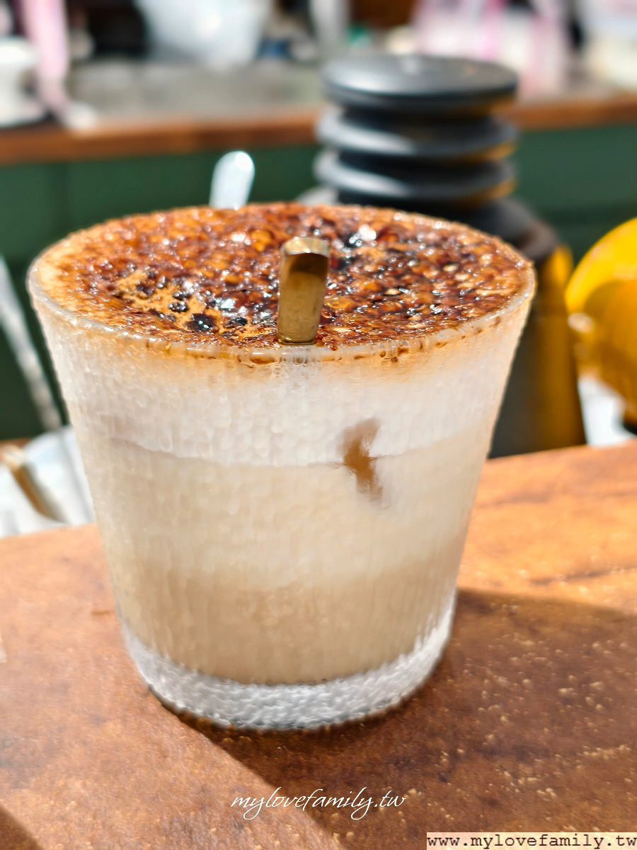 家人點的磚壓吐司及炙燒黑糖咖啡拿鐵及小杯的美式,家人讚不絕口~