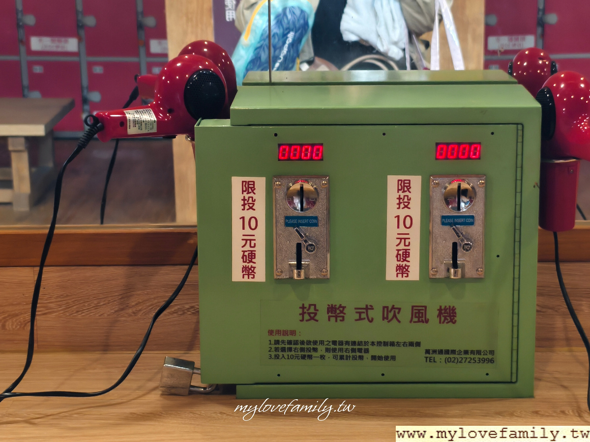 吹風機及脫水機皆採投幣式,使用者付費很合理,另外,沐浴區在另一空間,沐浴區如同是在日本泡湯的沐浴空間,使用小板凳及木製水桶,但這部份就無法拍照跟大家分享。