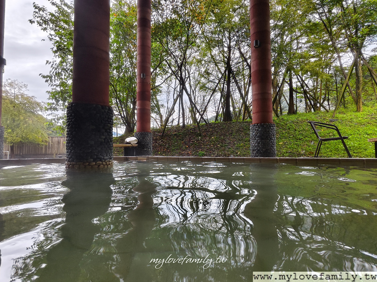 另一個較大的半露天池,水是流動的,相對起來,水質非常乾淨,加上戶外賞景泡湯,會不知不覺的坐了15分鐘才想起該起來休息片刻,泡湯建議不要泡太久,適當的休息很重要。
