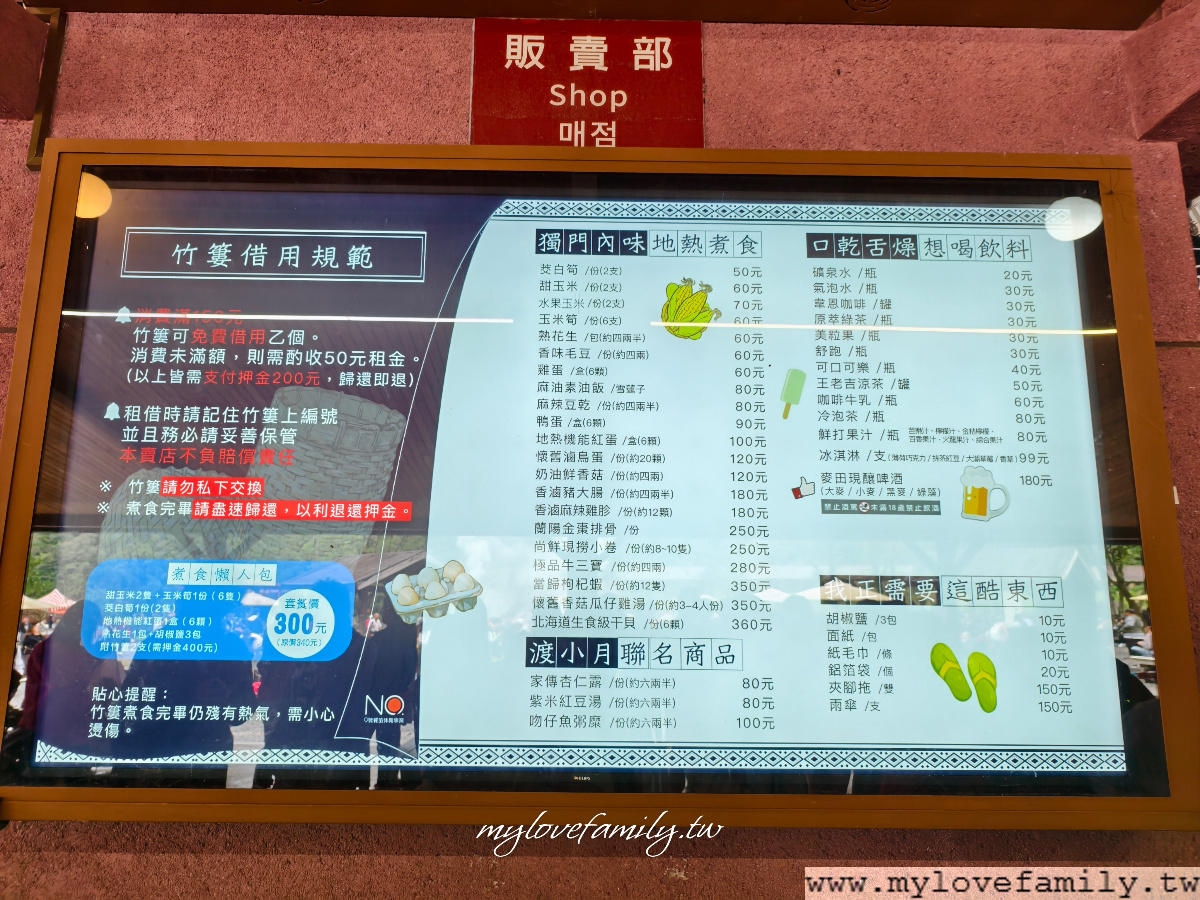 在販賣部消費滿150元,竹簍可免費借用乙個。消費未滿150元,需酌收 50元租金。(以上皆需支付 押金200元,歸還即退還)。懶人包套餐含:甜玉米2隻、玉米荀6隻、茭白筍2隻、地熱有機蛋6顆、熟花生一包、胡椒鹽3包,附竹簍二個,加上押金$400元,等於先付了$700元,待歸還時再退回押金$400元。