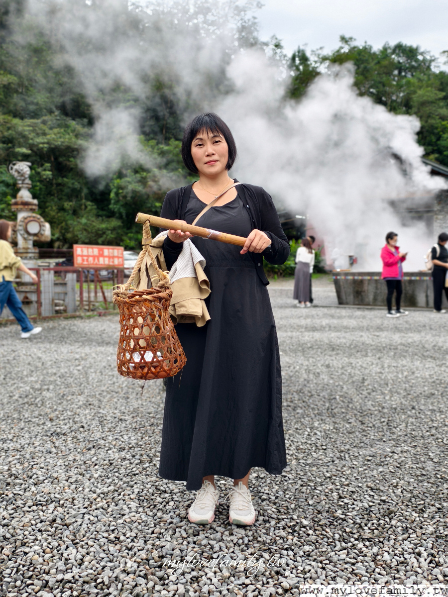 溫泉煮食也要有儀式感,拿著竹簍拍照記錄一下。