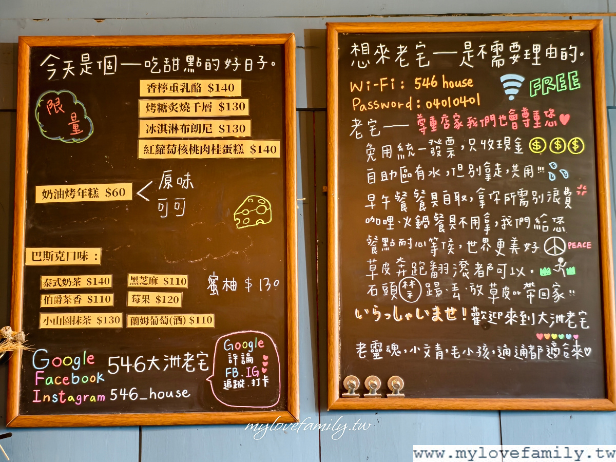 【546大洲老宅】賣些什麼?除了菜單上的選項之外,還有牆面上的品項,另外,牆上的文字請閱讀一下喔!