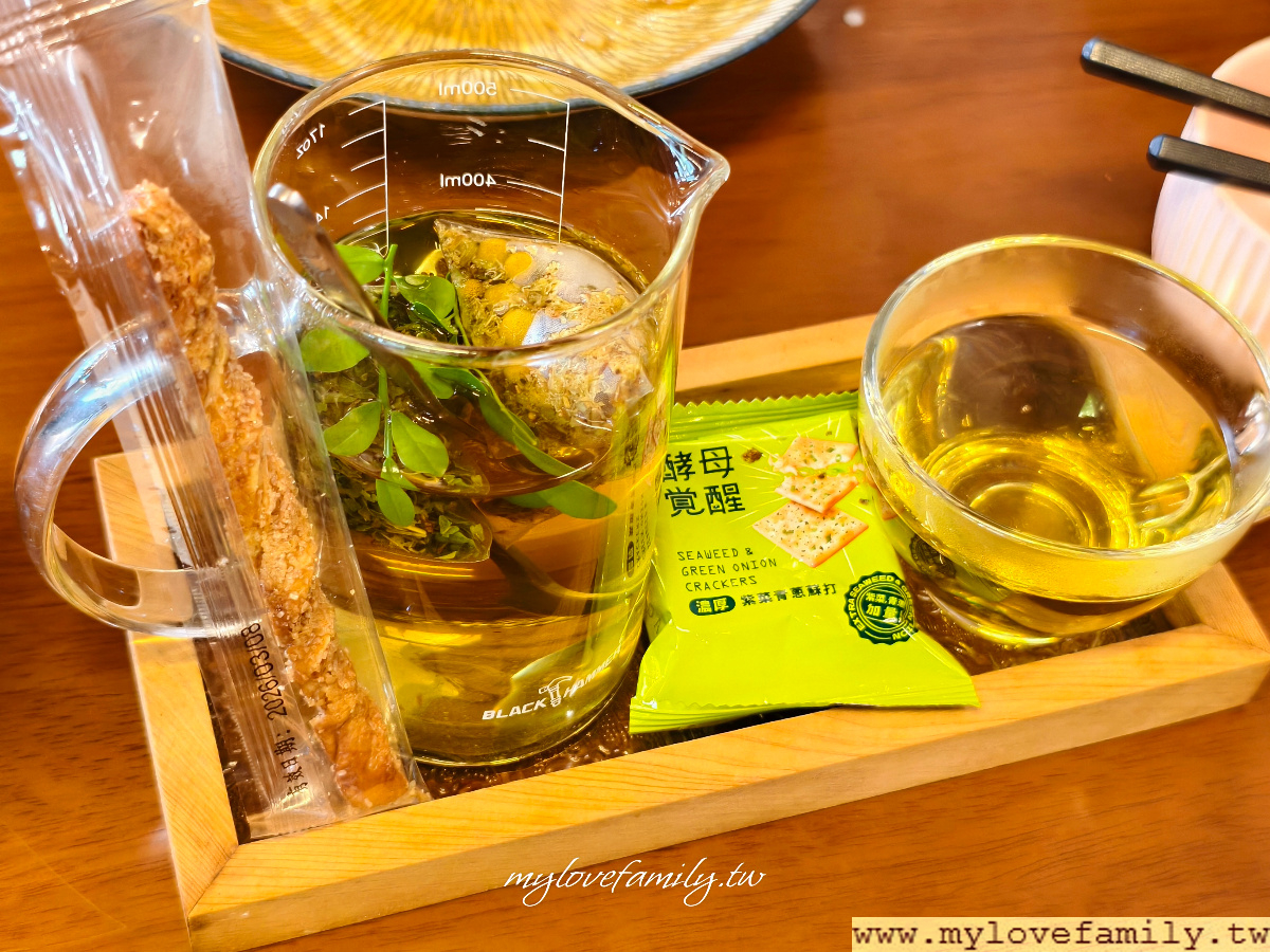 我們當天的座位是在入口進來後,左手邊的用餐區,餐具及開水全放置在這區的前方。這一區以三人、四人座位主。