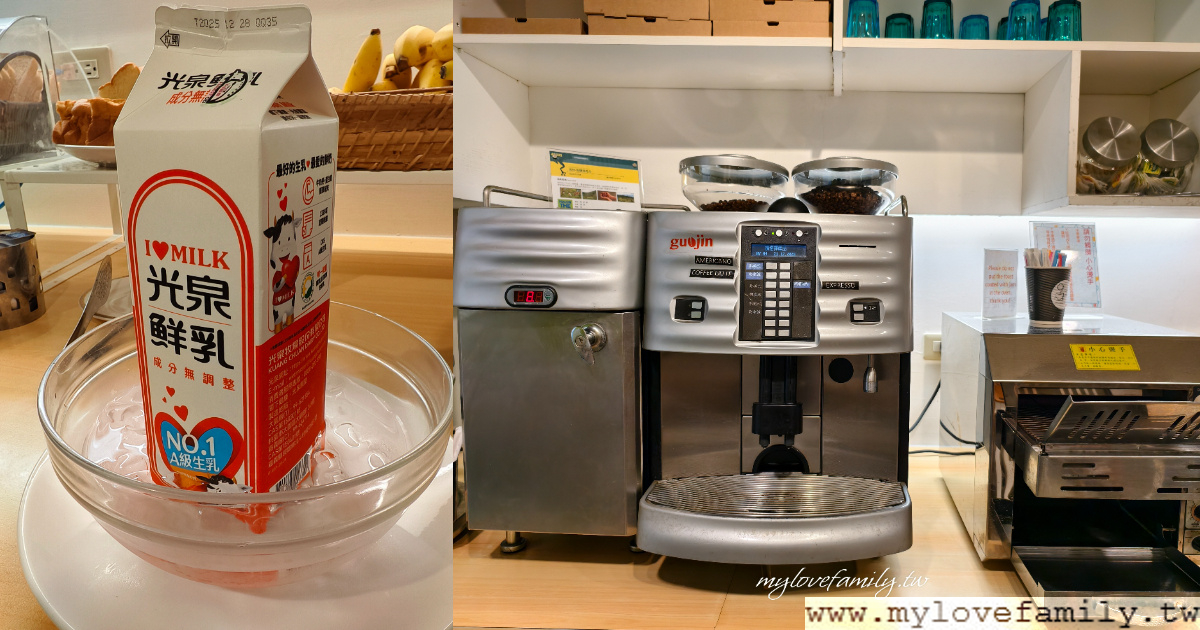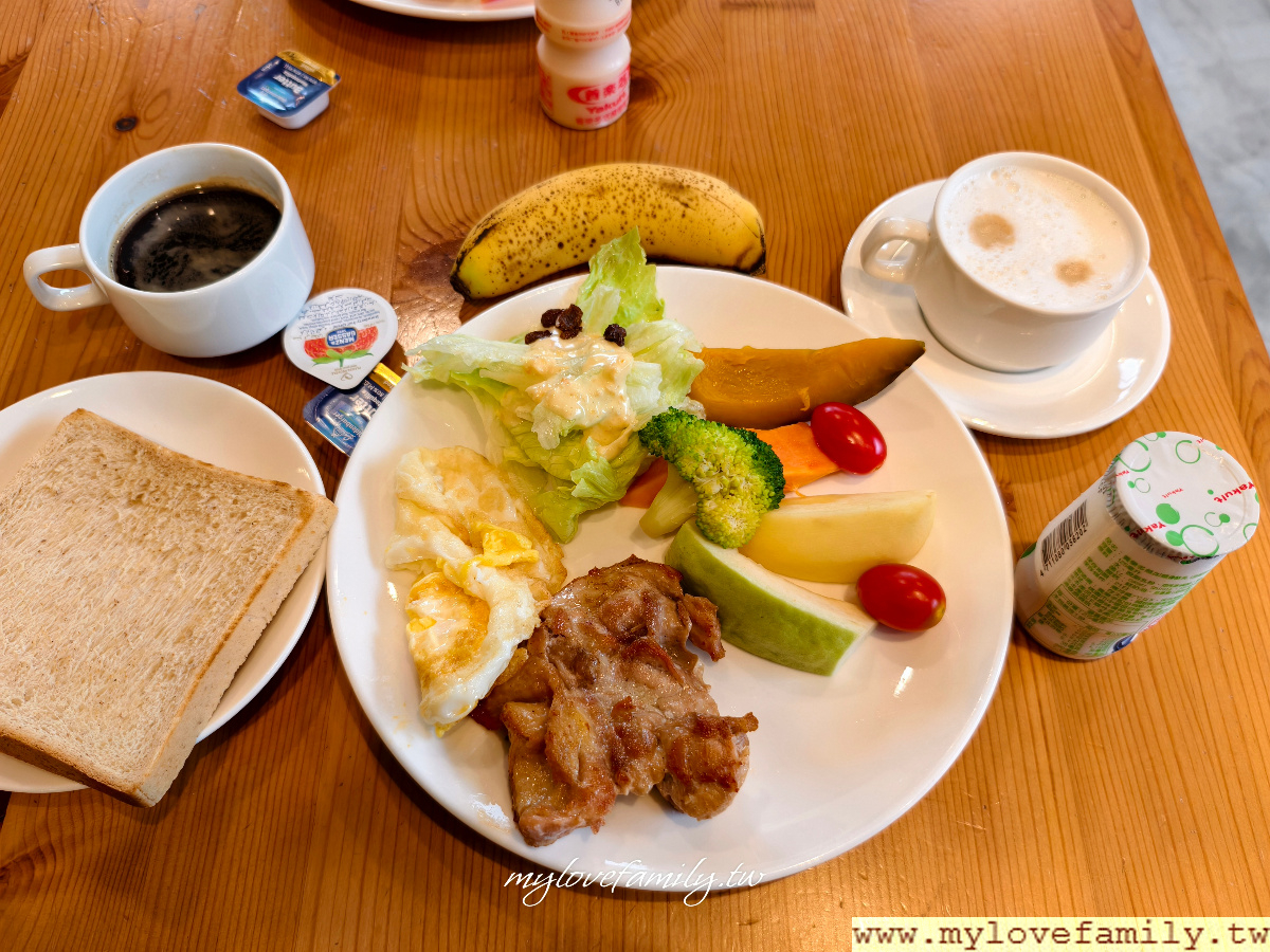 早餐採個人式套餐+自助區,自助區提供:吐司、自製蛋糕、羅東鎮農會養生豆奶系列、香蕉、養樂多、優酪乳、奶酪、鮮奶、咖啡、茶飲。