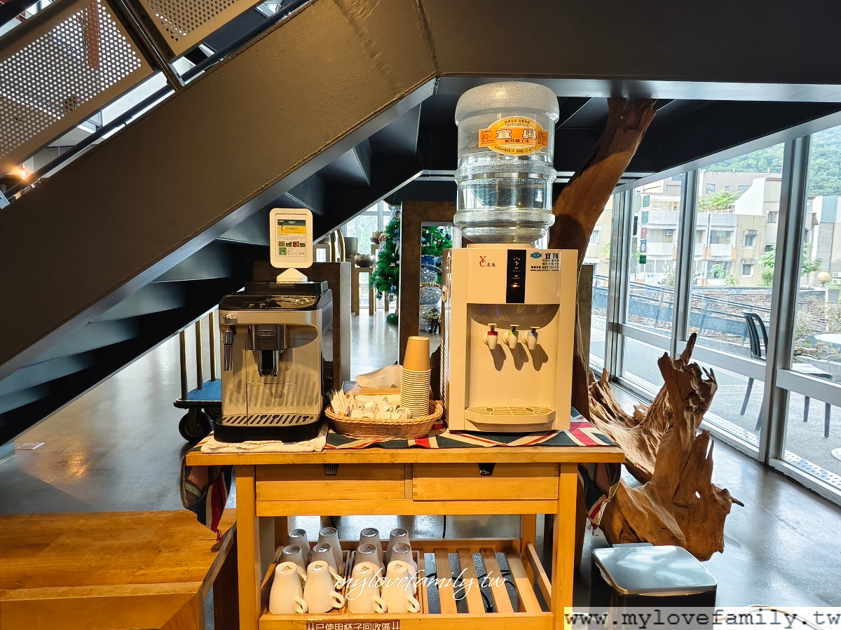 大廳連接著旅客休息區,辦理入住的同時,也能在這休息喝杯咖啡,還有投幣式按摩椅可以使用。