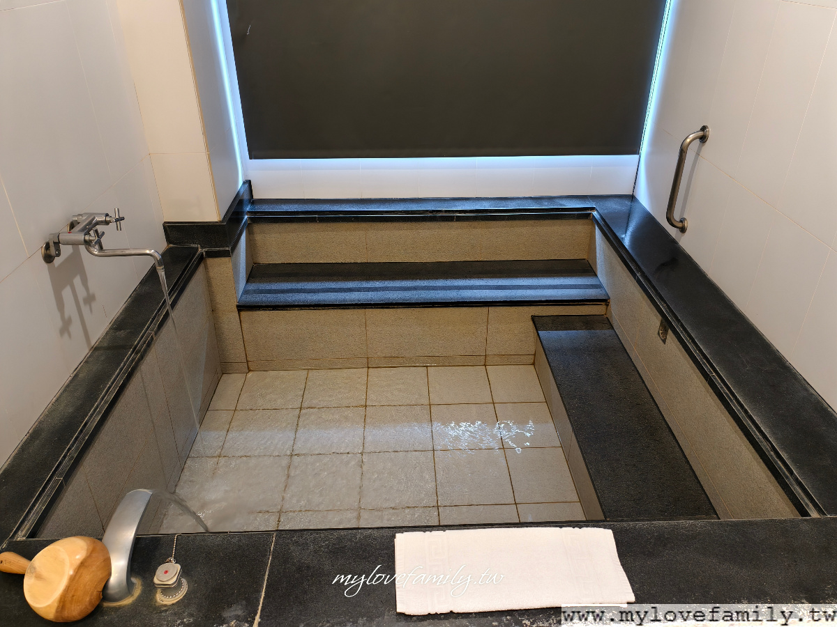 這泡湯池真的大的很誇張,以我身高160公分,根本可以接近可以躺平的空間,夜裏,家中二位身高177公分的青少年一起泡湯,空間還是超寬敞。