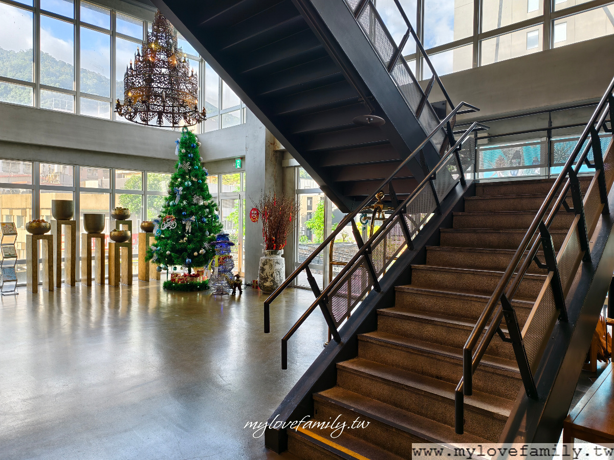 拿到飯卡後,往六樓我們入住的房間前進吧!而在六樓出電梯,忍不住又往下拍了一張照片,天空連接山景相伴的景觀,這視角太美了。