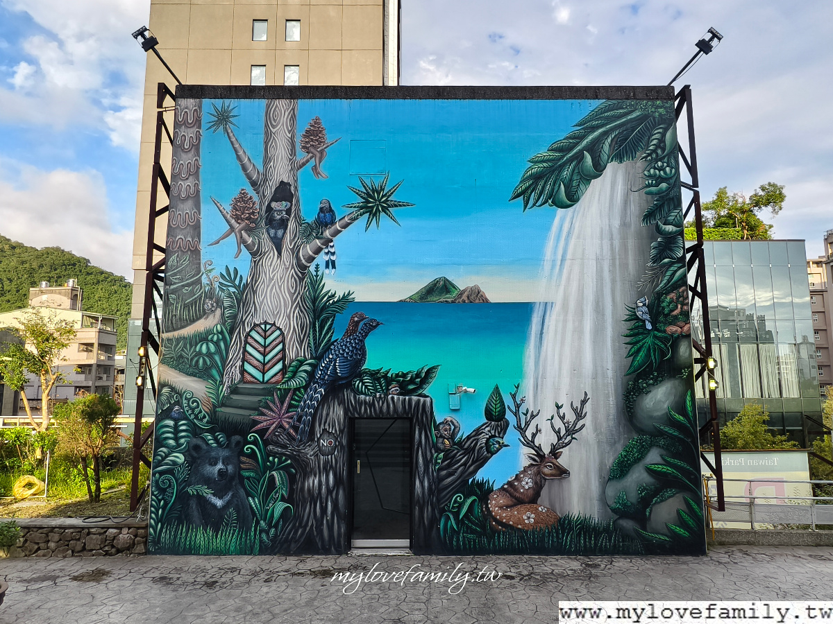 停好車後,搭乘電梯直接到五樓大廳辦理入住手續,一走出電梯口,就看到這超大幅彩繪牆,有注意到牆上的亮點嗎?是龜山島也!