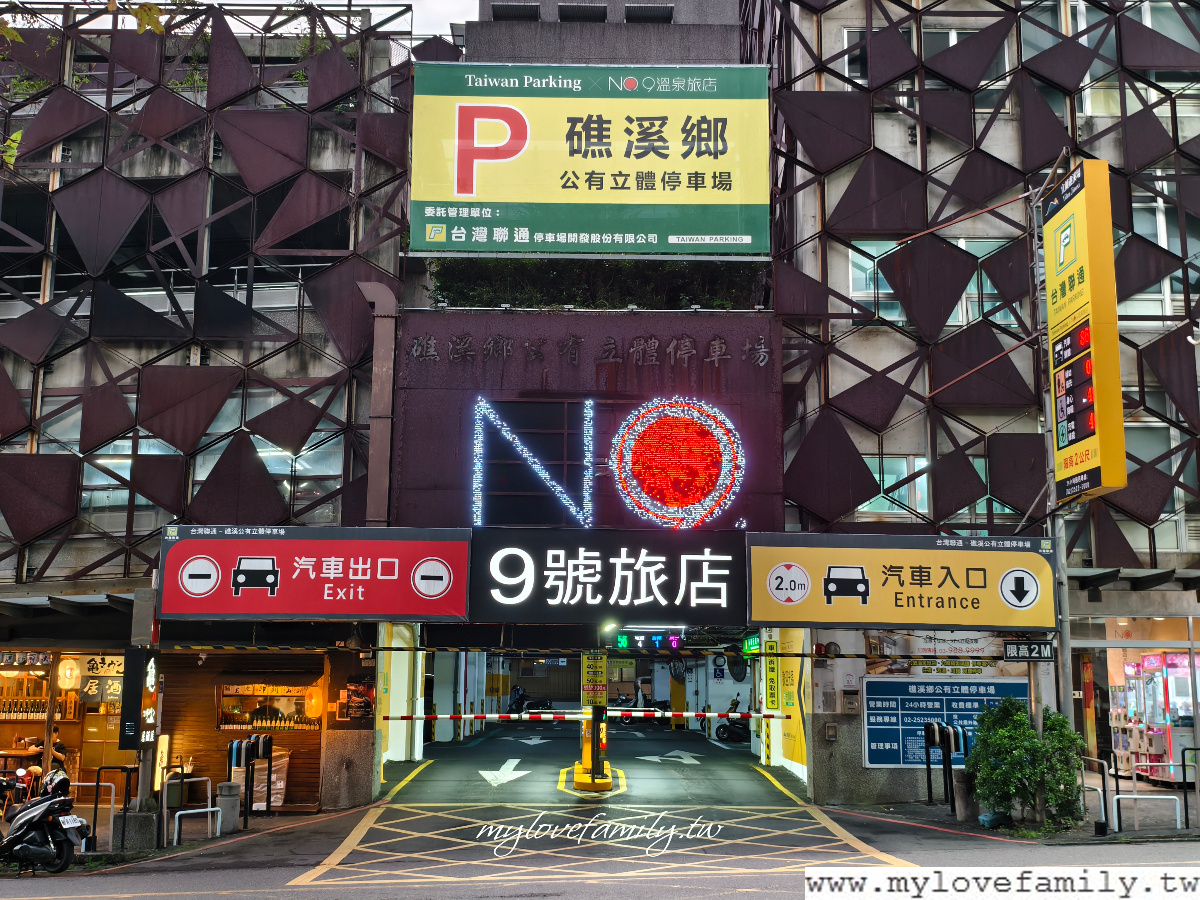 【九號溫泉旅店】建築物相當顯眼,一~四樓為礁溪鄉立體停車場,只要是入住【九號溫泉旅店】,停車完全免費。