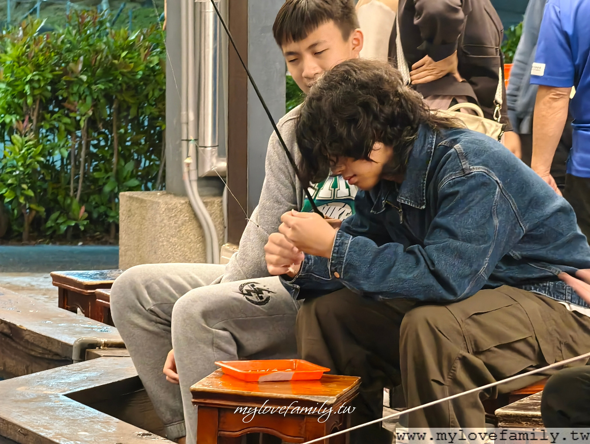 現場好歡樂,每個人都專注在釣竿上, 時間過的好快,青少年一隻也沒釣到啊~看來,釣蝦是需要技術的。