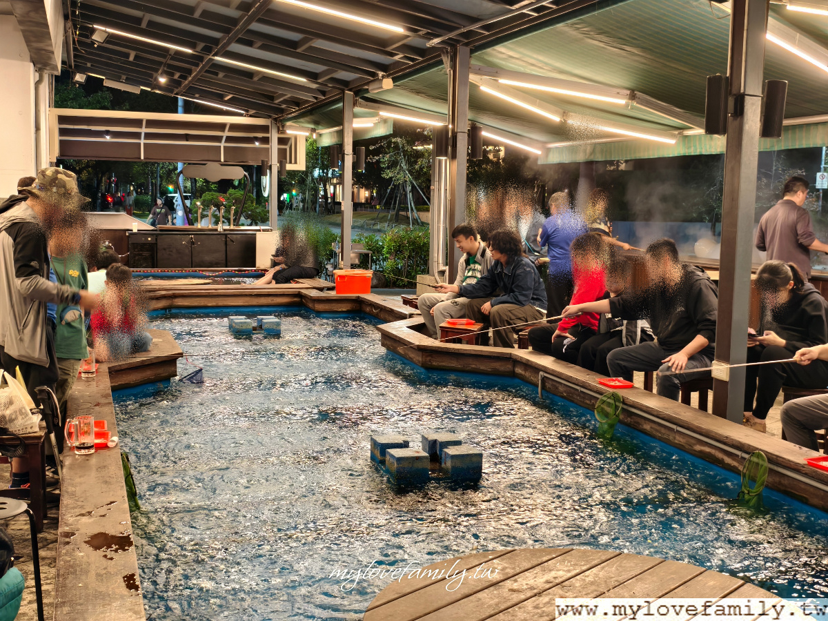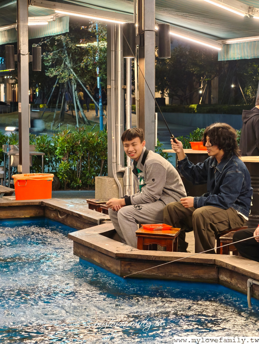 休息片刻後,拿著溫泉魚泡腳劵、釣蝦劵、溫泉煮食套餐劵,直接前往一樓的設施區前進。