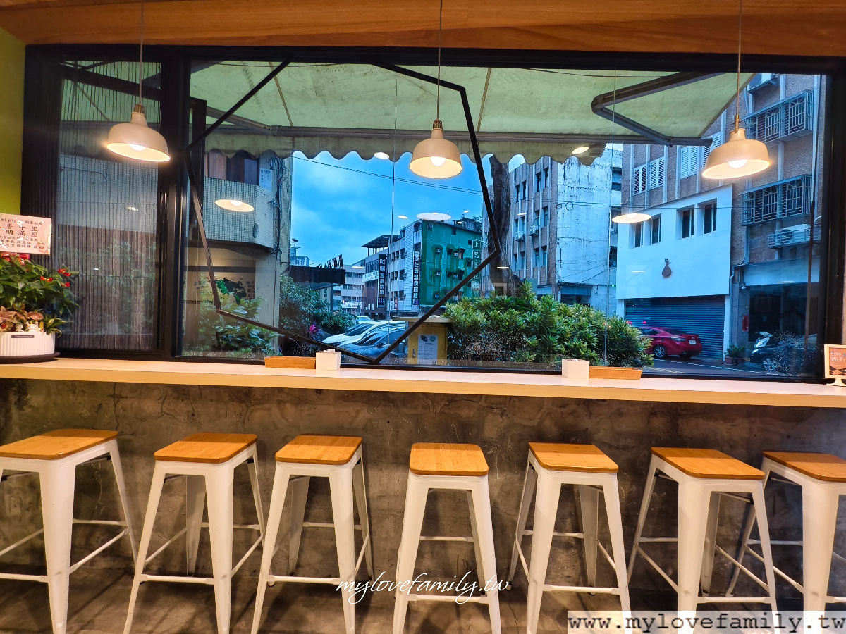 雙面採光,坐在高腳椅區,一邊欣賞清晨天色微明變化的景象。