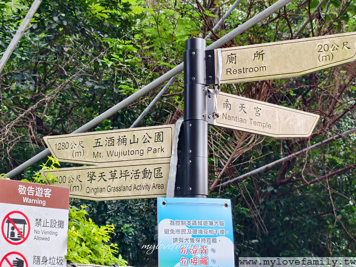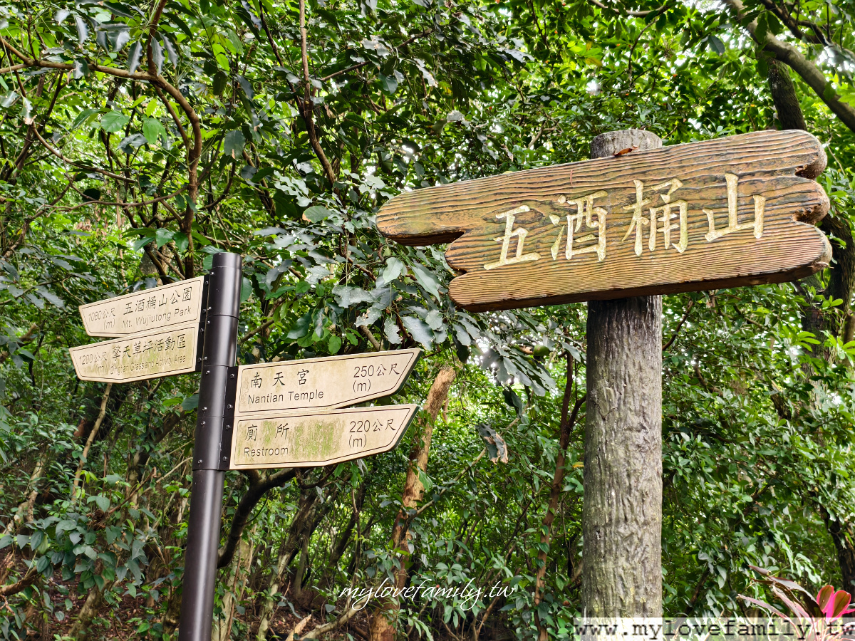 往別忘了爬山前先上個厠所喔!指標很清楚,不會走錯方向,上完厠所就出發。直接往【五酒桶山公園】出發。