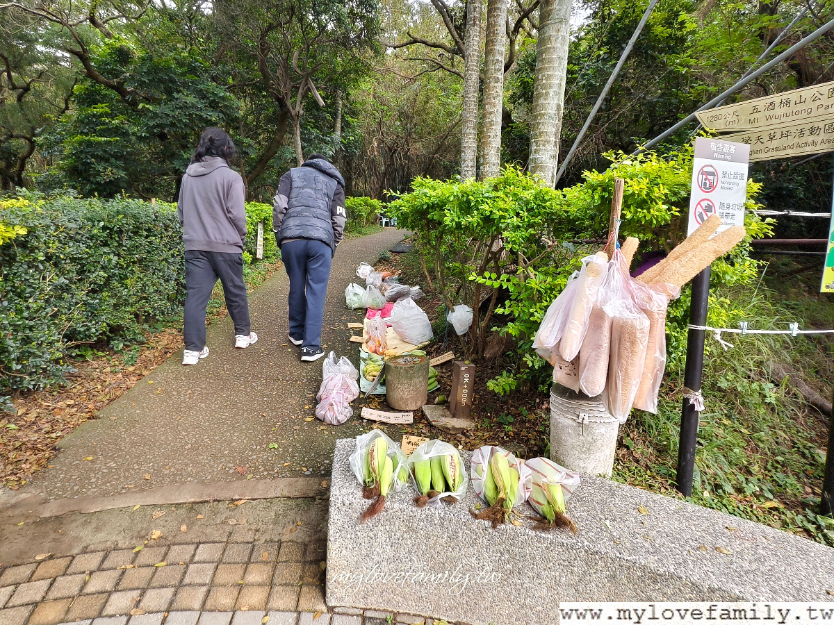 【五酒桶山步道】的奇景之一,就是在入口處就有人將販賣的商品放在路邊,在這完全看不到老闆喔!如要購買,可以按鈴,老闆就會出現了。