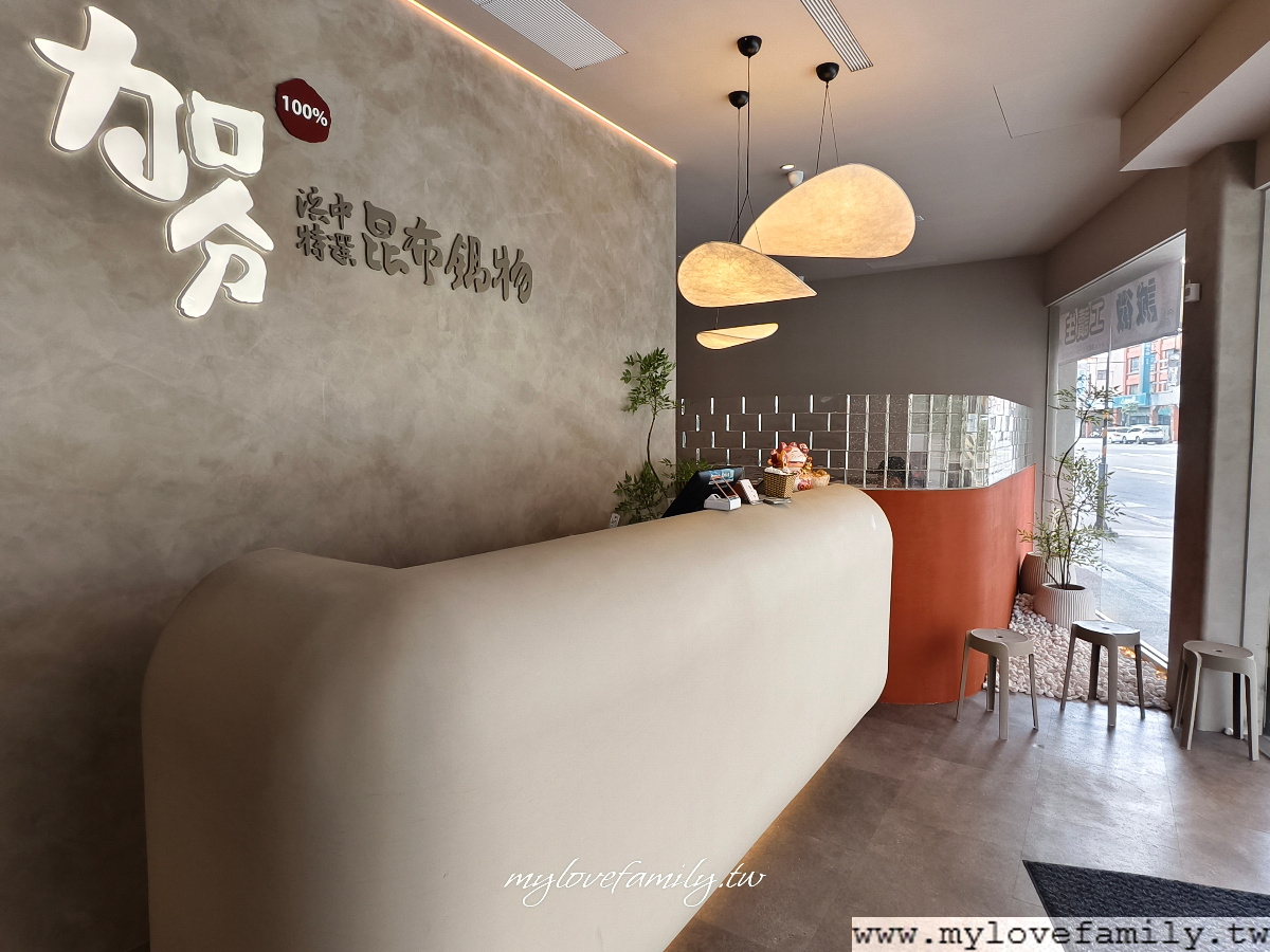 平日中午來到【加分100%浜中特選昆布鍋物-桃園大興店】,平日不用等待就能入座還不錯。整個餐廳的裝潢很有特色,櫃檯這區以弧型設計,整個就是很圓融的感覺。
