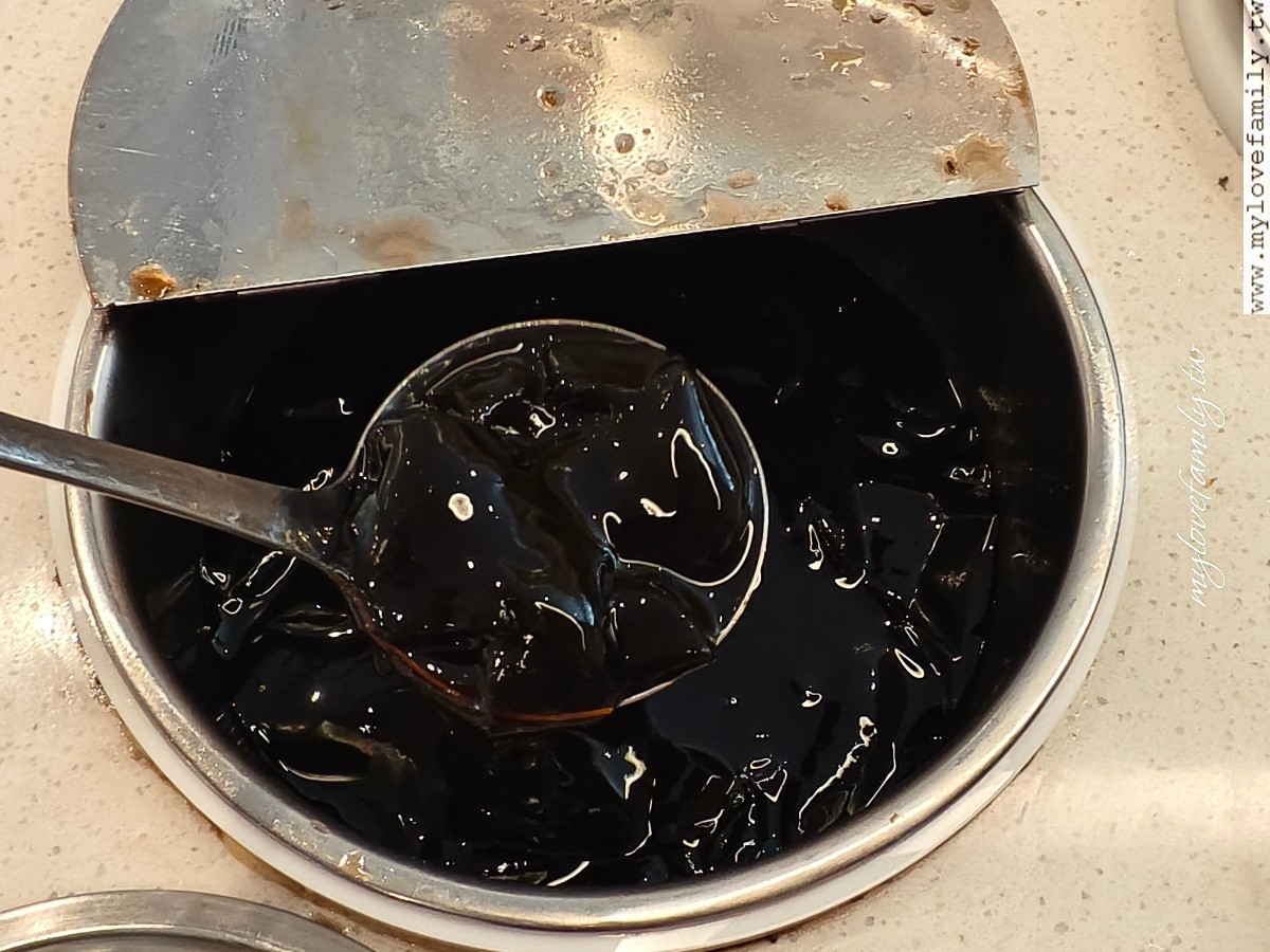 火鍋還沒上桌前,先來一碗仙草芋泥,仙草本身沒甜味,搭著有加糖的芋泥好搭喔!