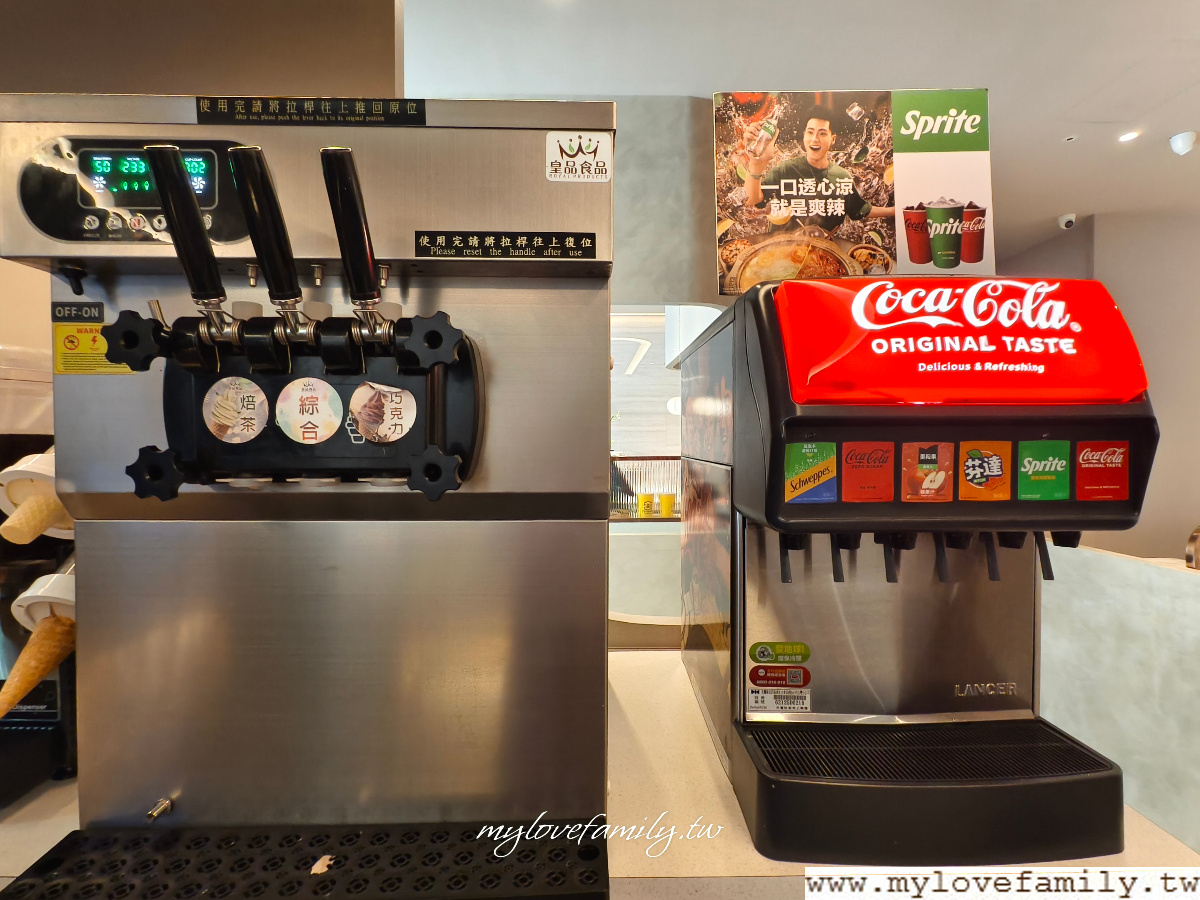 飲品及霜淇淋的部份,各式的汽水、冰沙、紅茶、奶茶、UCC咖啡、無糖熱茶飲等等。