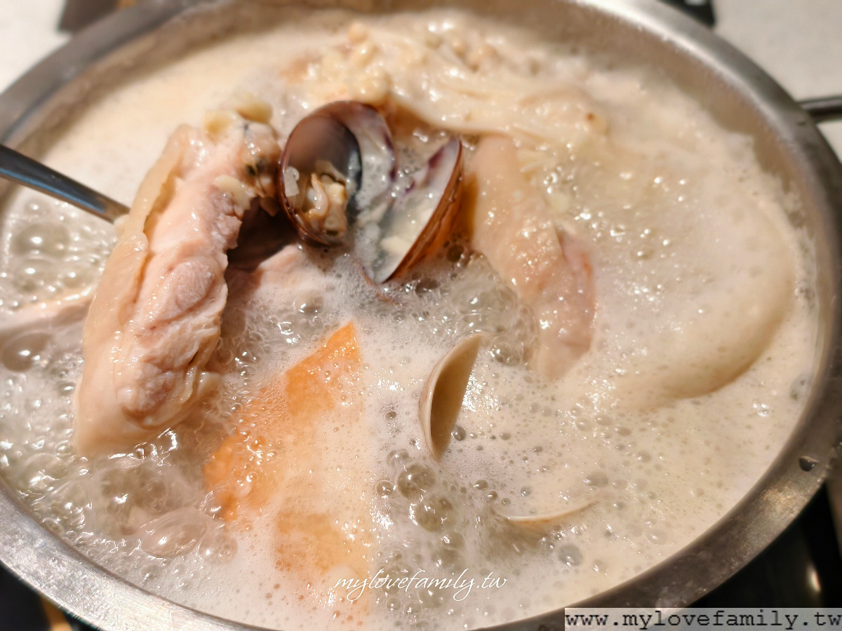 我的蒜頭蛤蜊雞腿鍋,香氣十足,滿滿的蒜頭之外,蛤蜊好新鮮,共有二十多顆,整個好鮮甜。