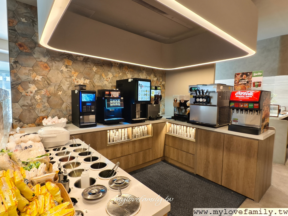 自助吧的規劃在同一區,如整間客滿時,或許在取自助吧時會有擁擠的感覺。雖沒有蔬菜自助吧,但這的飲品及甜點相當有特色,飯、麵、冬粉、王子麵、雞蛋、 飲品、霜淇淋,外加有仙草、芋泥無限供應好加分 。