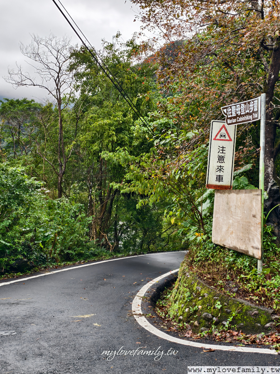 指標指著往聖母登山步道,但不一定要往這走喔!我們是由原本的道路直行而上,距離應該也是差不多。