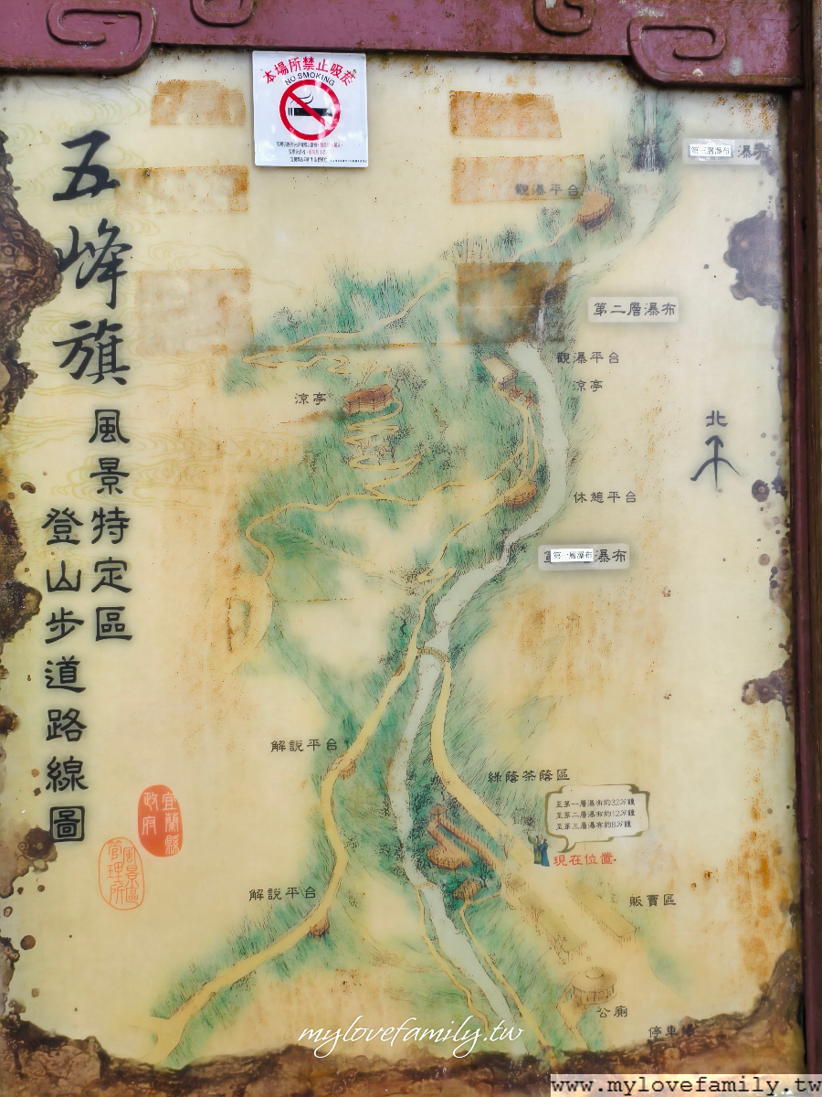 五峰旗風景區路線圖,整個【五峰旗瀑布】共有三層,目前都有開放行走。