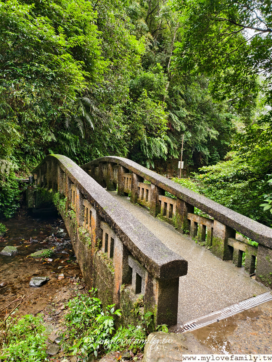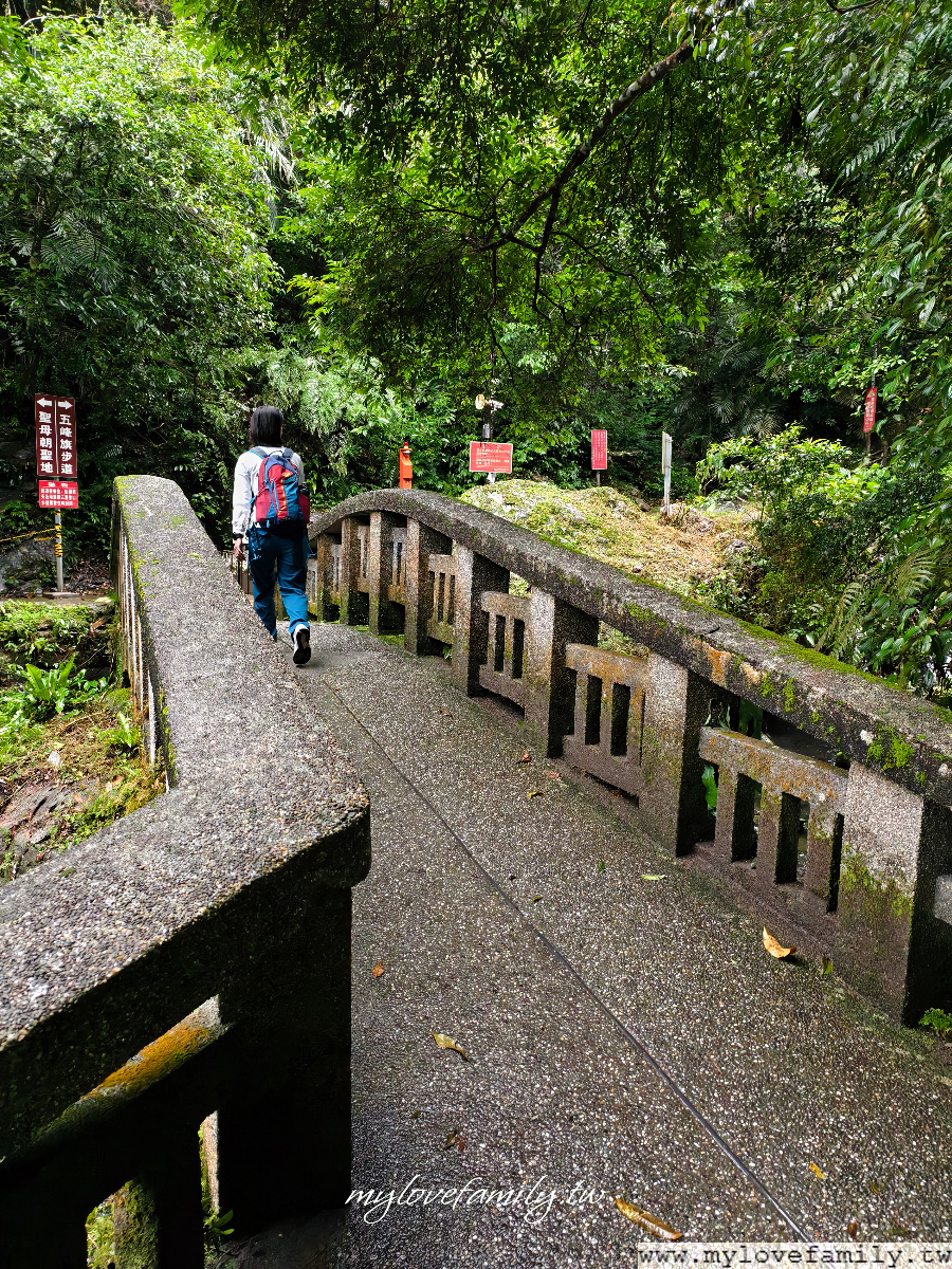 走過這橋後,有看到左右二側的指標嗎?一邊指【五峰旗步道】,另一邊則是【聖母朝聖地】,我們是走【五峰旗步道】,除了看到瀑布之外,也能到達【五峰旗聖母堂】。