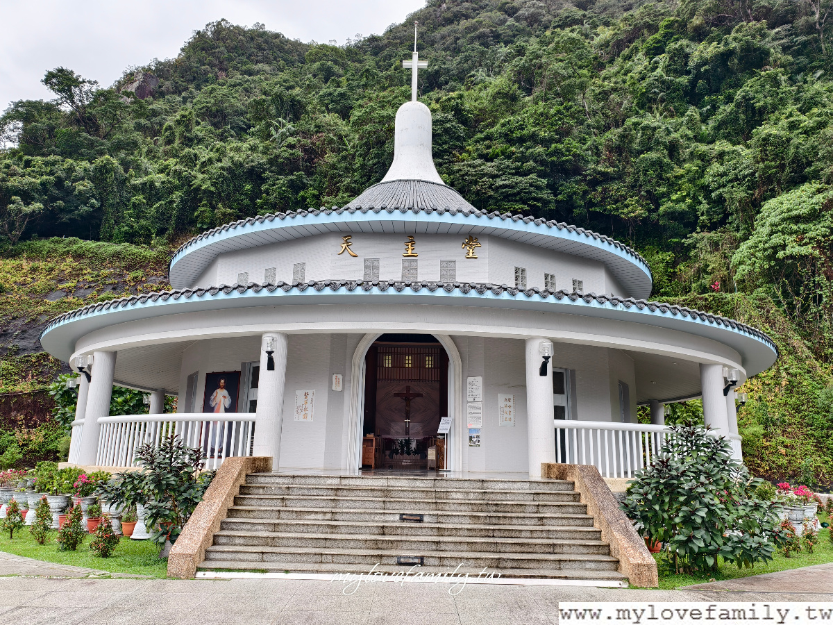 好美的【五峰旗聖母堂】,中式天壇造型圓形天主教堂 ,美輪美奐又有莊嚴感,搭著戶外平台的無敵視野美景,好有獨特性的美感。