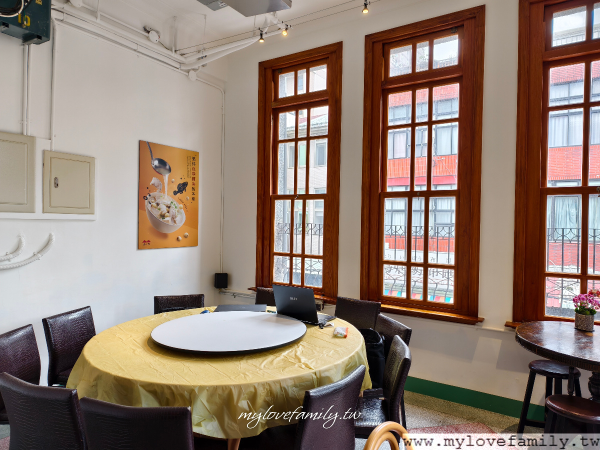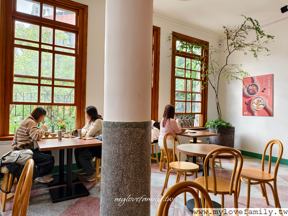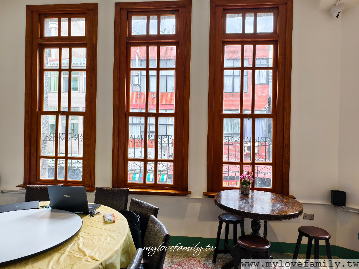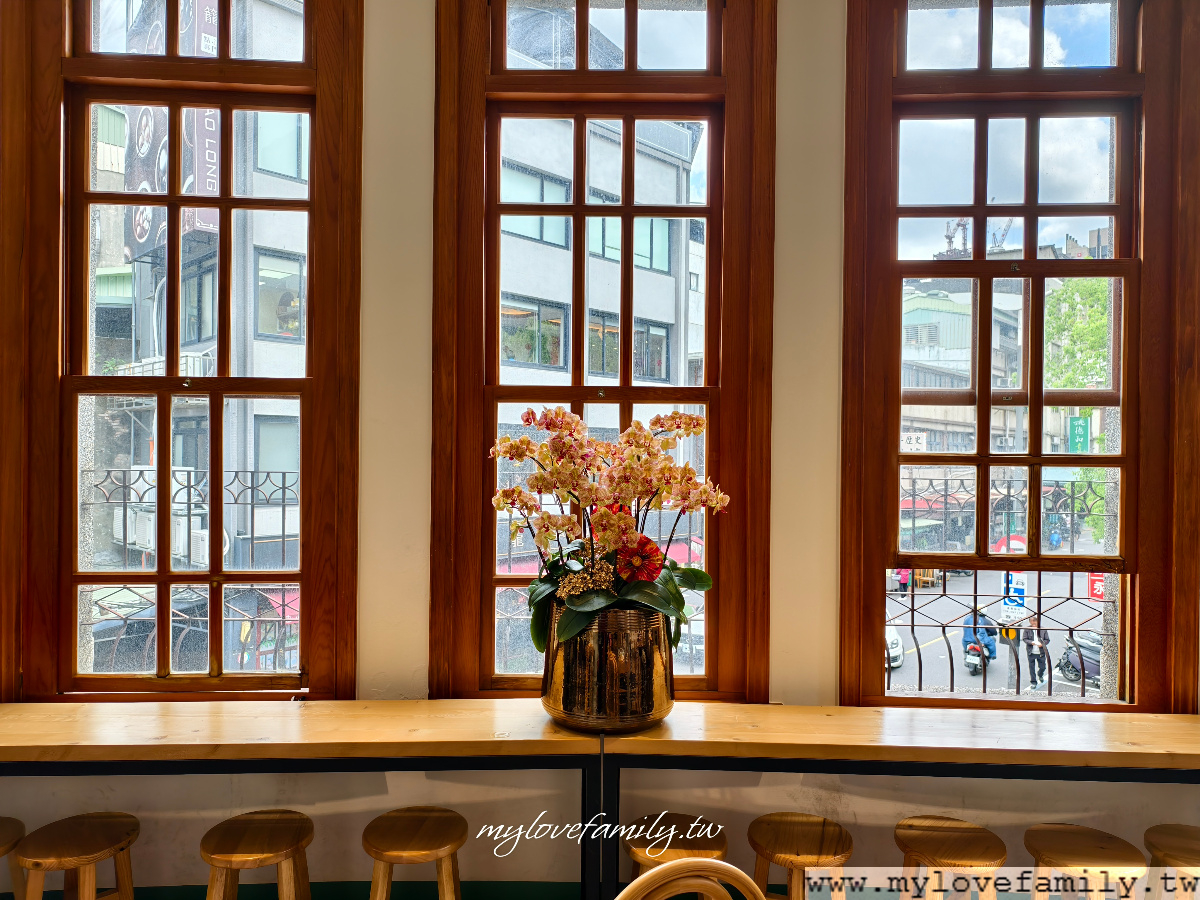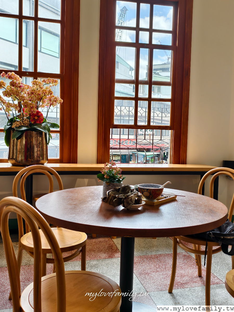 古建築裏的木窗特別美,望著窗外的街景,迪化街商圈總是有著人來人往的潮,即使是一個人來用餐,選擇這座位區放空也很不錯。