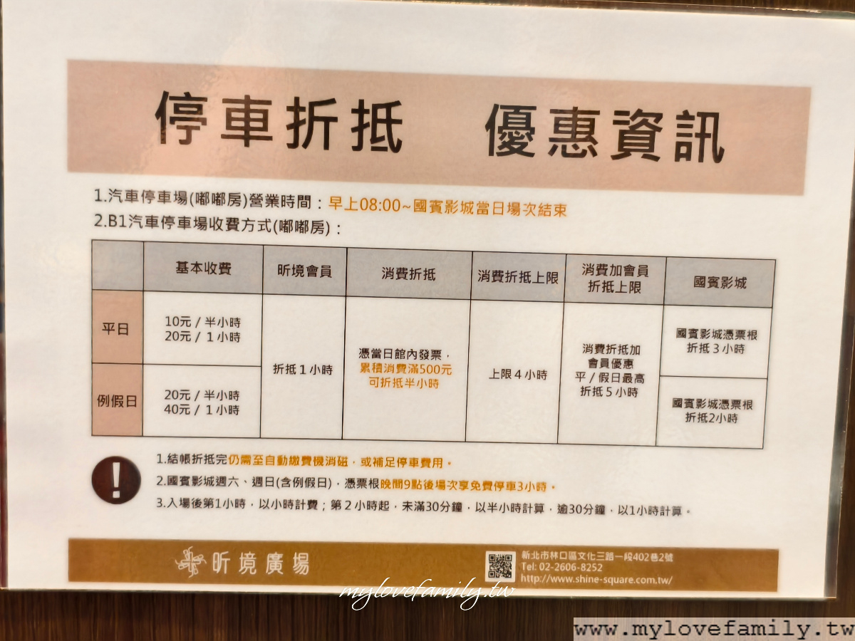 【泰鼎創意泰式料理】位在林口的【昕境廣場】,當內消費滿500元可抵半小時停車費,以我們當天消費4000多元,可以直接折抵4小時停車費。