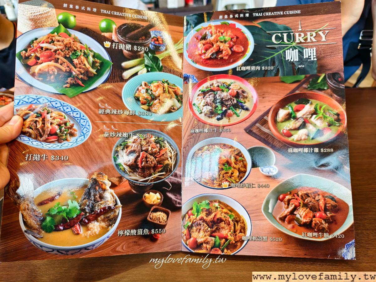 餐點種類很多,整個會有選擇障礙感,炒物、咖哩、蒸物、涼拌、炸物、湯品、青菜,光看菜單,不知餐點的份量如何,我們在點餐時,還一度擔心點了太多啊!菜單上並沒標示米飯的價格,工作人員告知,白飯一碗30元,如白飯吃到飽則是一位收費40元,以泰式料理很開胃的情況之下,當然要點白飯吃到飽,否則只要是點二碗白飯就要60元了。另外,工作人員有詢問是否有當月壽星呢?家中的會考生是四月生日,在確認看了証件之後,招待全桌每人一杯150元飲品,整個好驚喜的優惠活動,這樣等於招待了1050元的飲料,好超值的活動,但這活動會持續多久?因沒有任何紙本資訊,建議大家電話訂位時自行詢問。