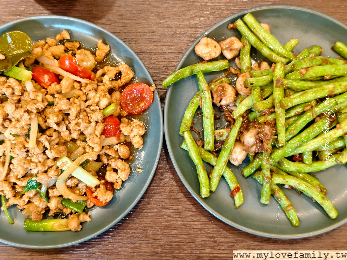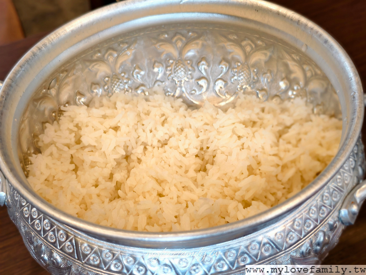 白飯先送上桌,我們討論著這是泰國米嗎?不是很確定,但口感上是長米沒錯,沒有米的香氣,粒粒分明的口感是我們家喜愛的,加上泰式料理的醬汁,青少年至少吃了三碗飯,真的是飽到晚餐直接省下來了。