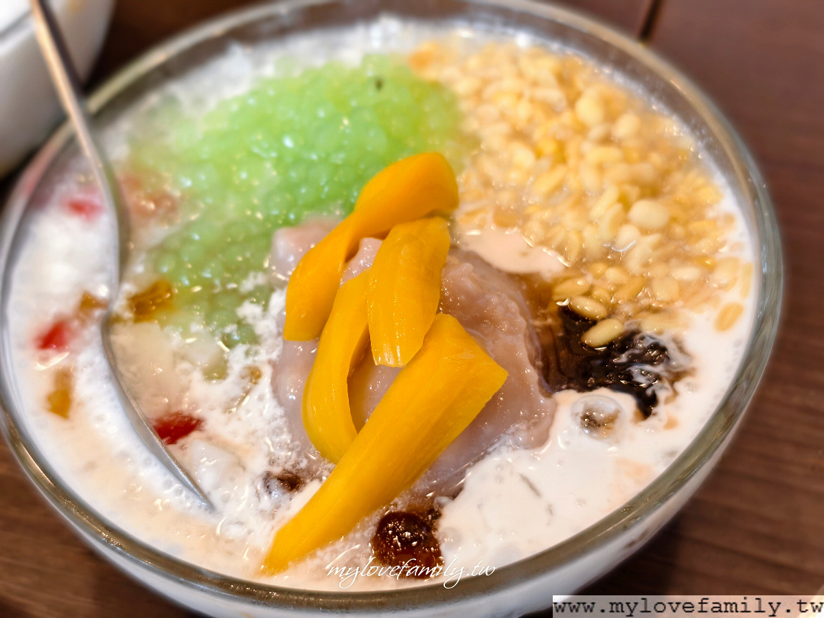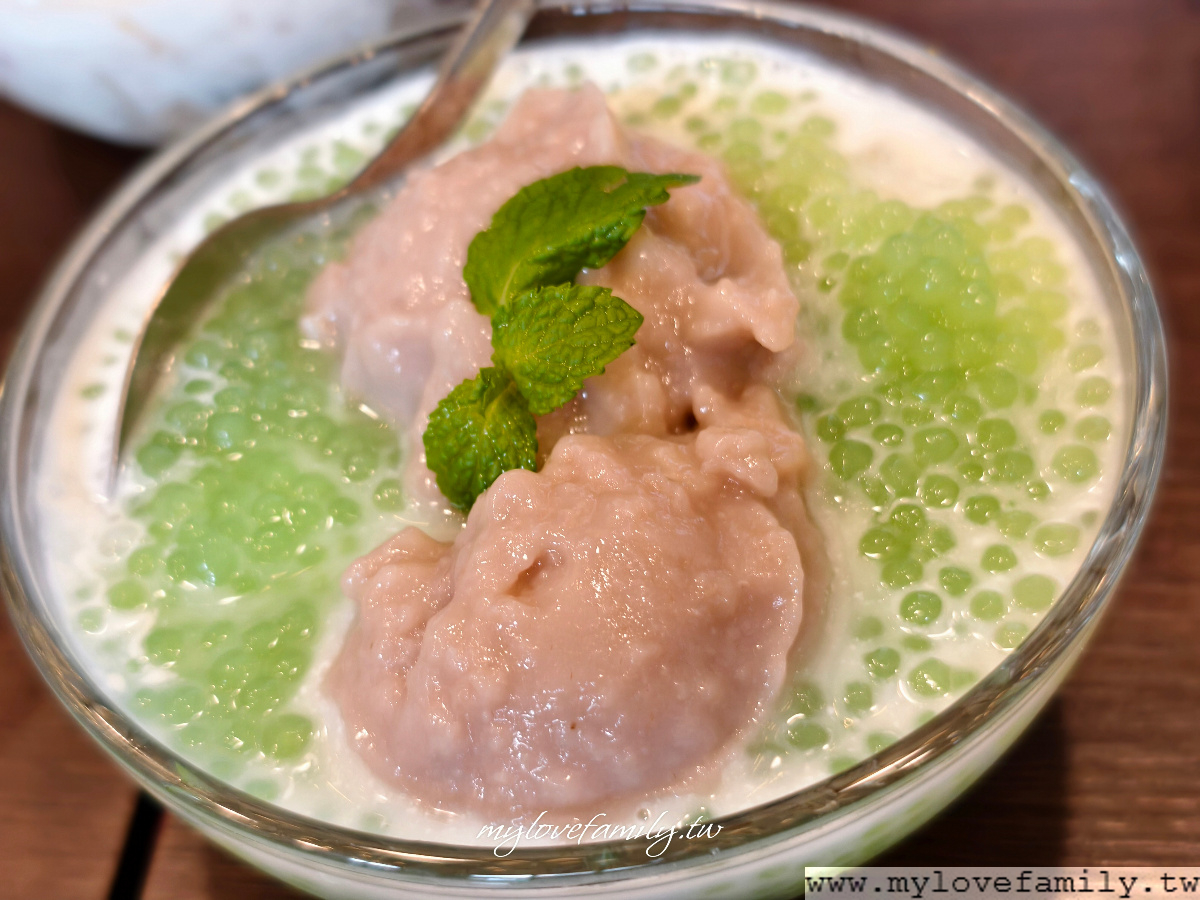 椰芋西米露,原以為是透明的西米露,沒想到是綠色的,不過口感上沒太大的差異,椰奶香很濃厚喔!