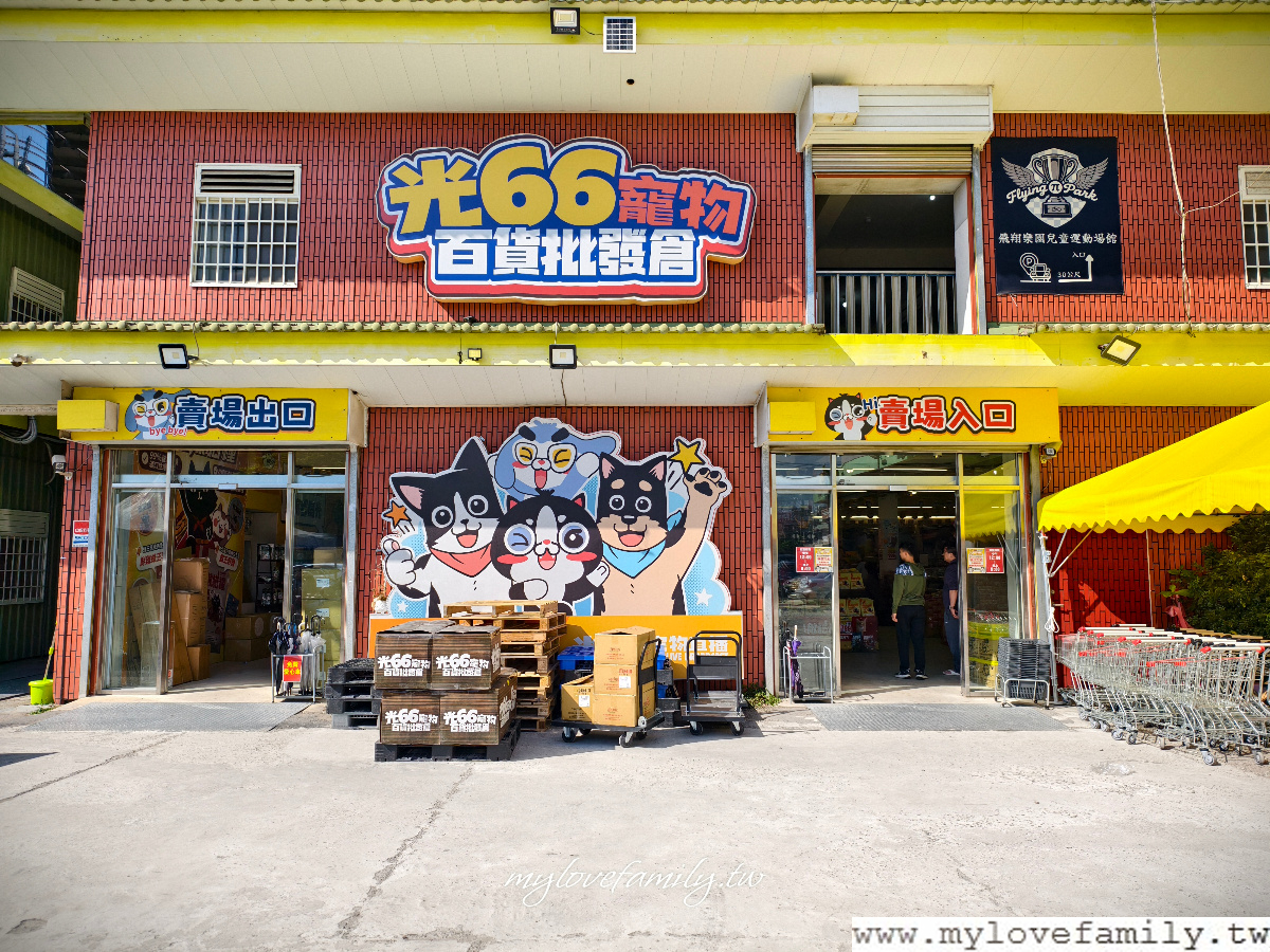 【光66寵物百貨批發倉-桃園旗艦店】位在龍壽街上,只要路過就能看到顯眼的招牌,直接把車停入停車場,開始輕鬆逛。