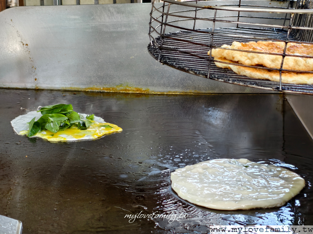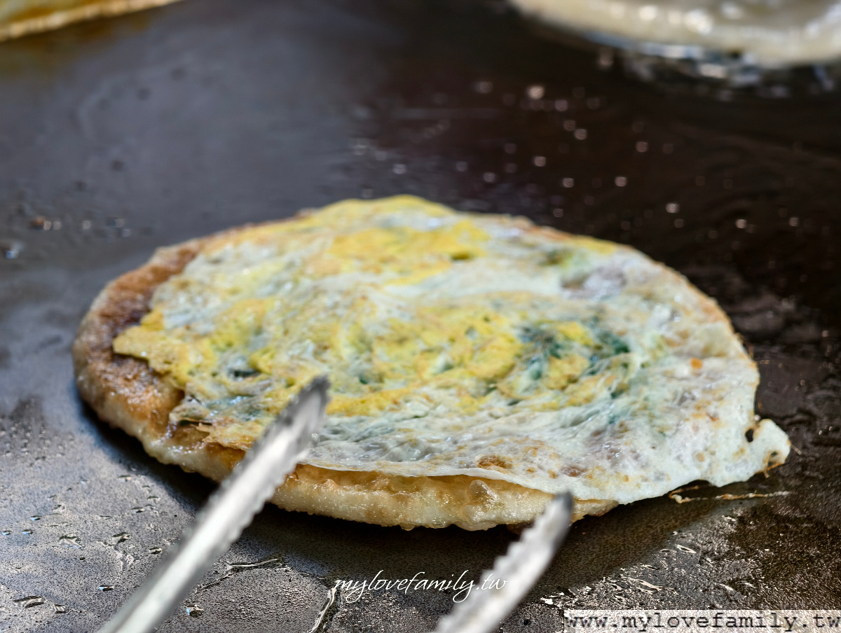 加蛋多十元,同時,不是只有蛋,還會搭上新鮮的九層塔,九層塔蛋蔥油餅相當對味,一口接一口,越吃越涮嘴喔!