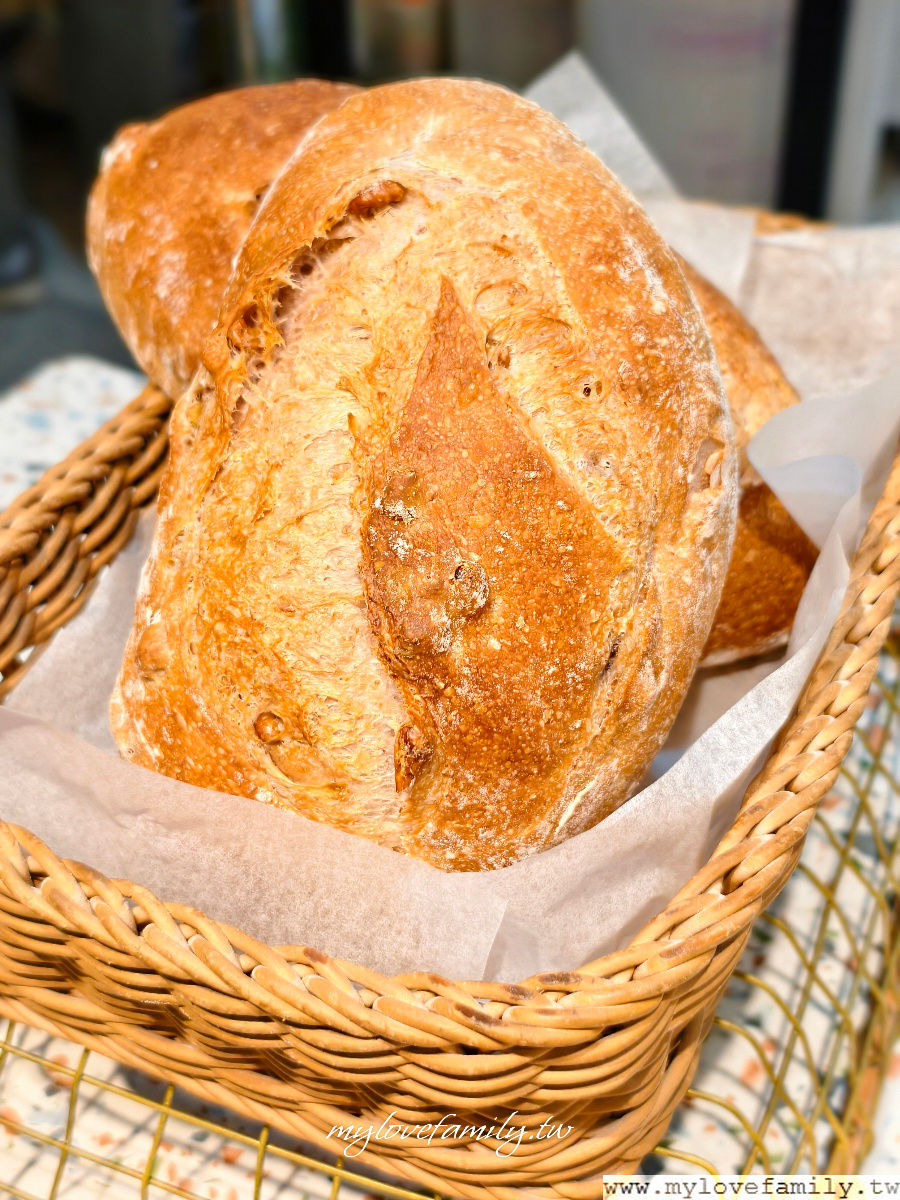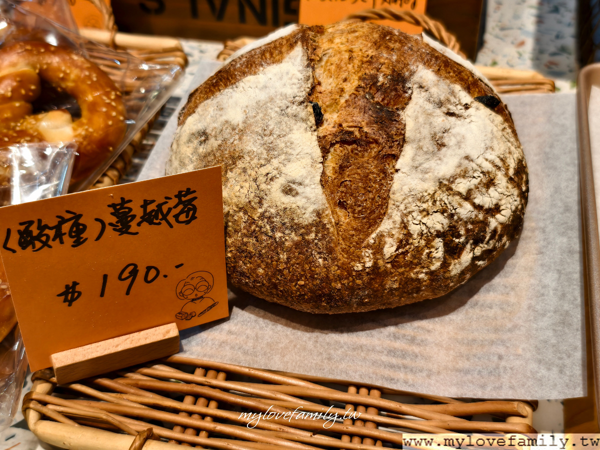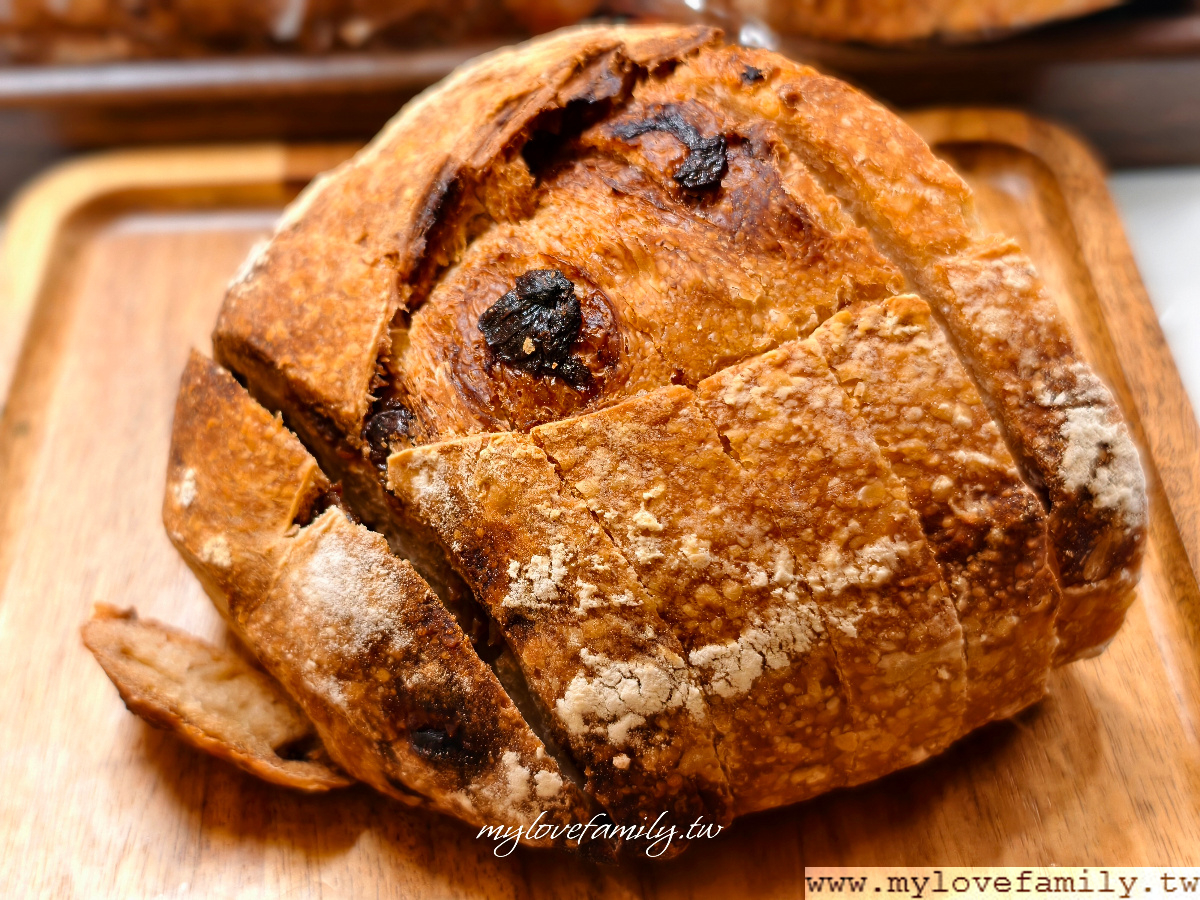 酸種麵包目前有五種口味,在地桃園不少間的早午餐咖啡館都是用這的酸種麵包來搭配,我個人很喜歡這一款柴燒桂圓酸種麵包,柴燒桂圓的焦香、甜味讓酸種麵包的香氣更豐富。